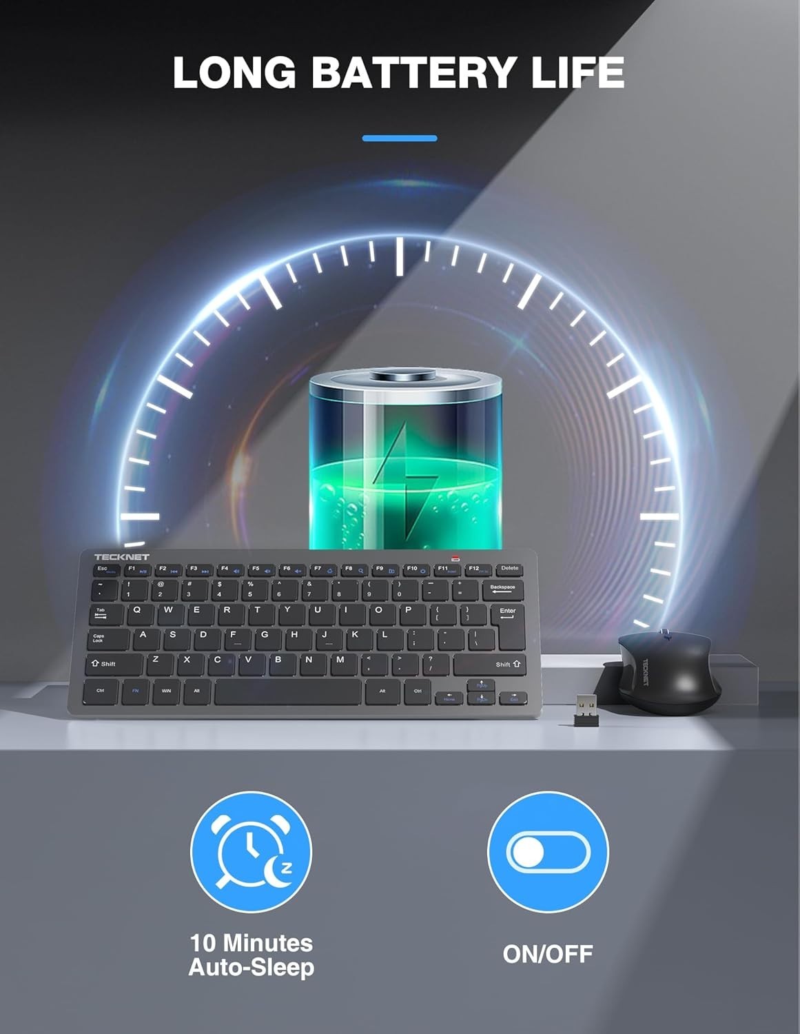 Wireless Keyboard and Mouse Combo, Mini Cordless Computer Keyboard and Mouse ...