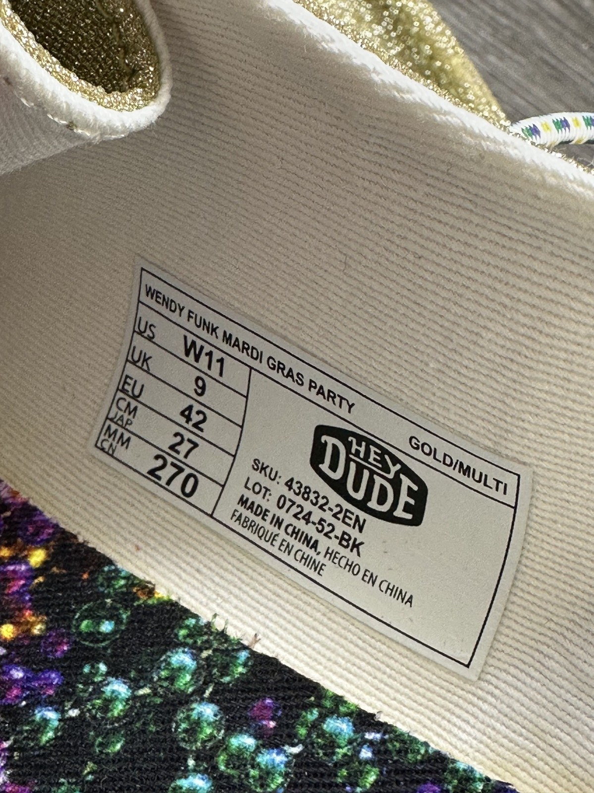 Hey Dude Wendy Funk Mardi Gras Women's 11 Gold Multicolored Lightweight Shoes