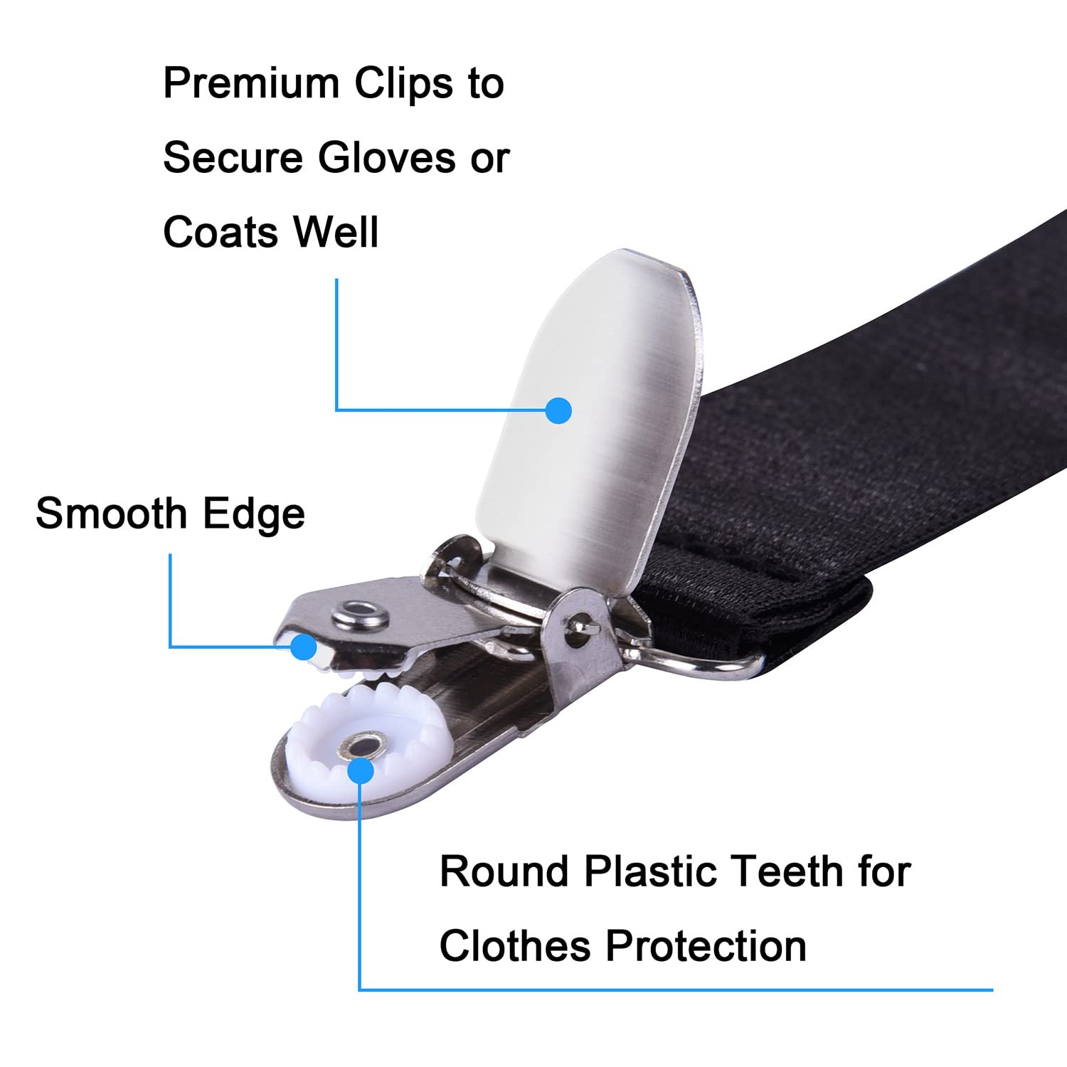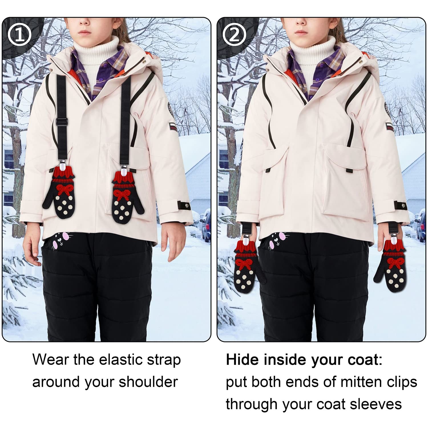 Wisdompro Mitten Clips, 2 Pack Adjustable Glove Clips with 26-49 inch, Black