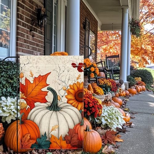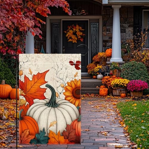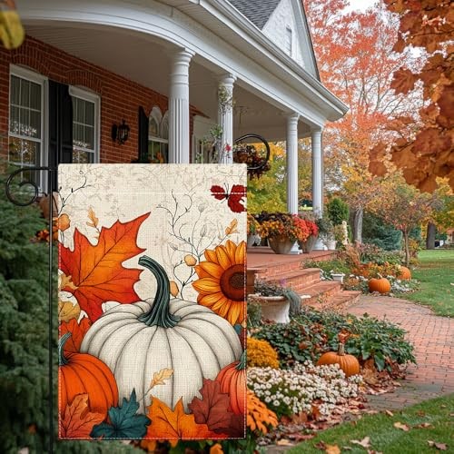 Fall Pumpkin Garden Flag 12x18 Inch Double Sided Thanksgiving Maple Leaves