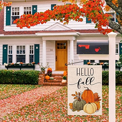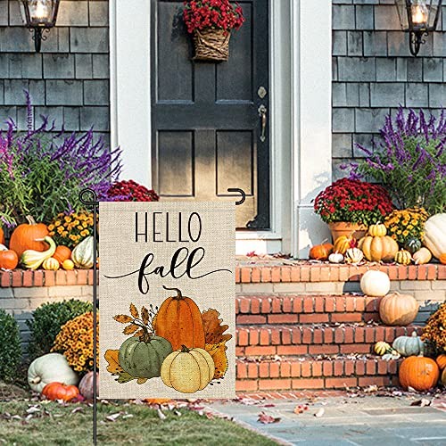 Hello Fall Pumpkin Garden Flag 12x18 Inch Double Sided, 12 X 18 Multicolor