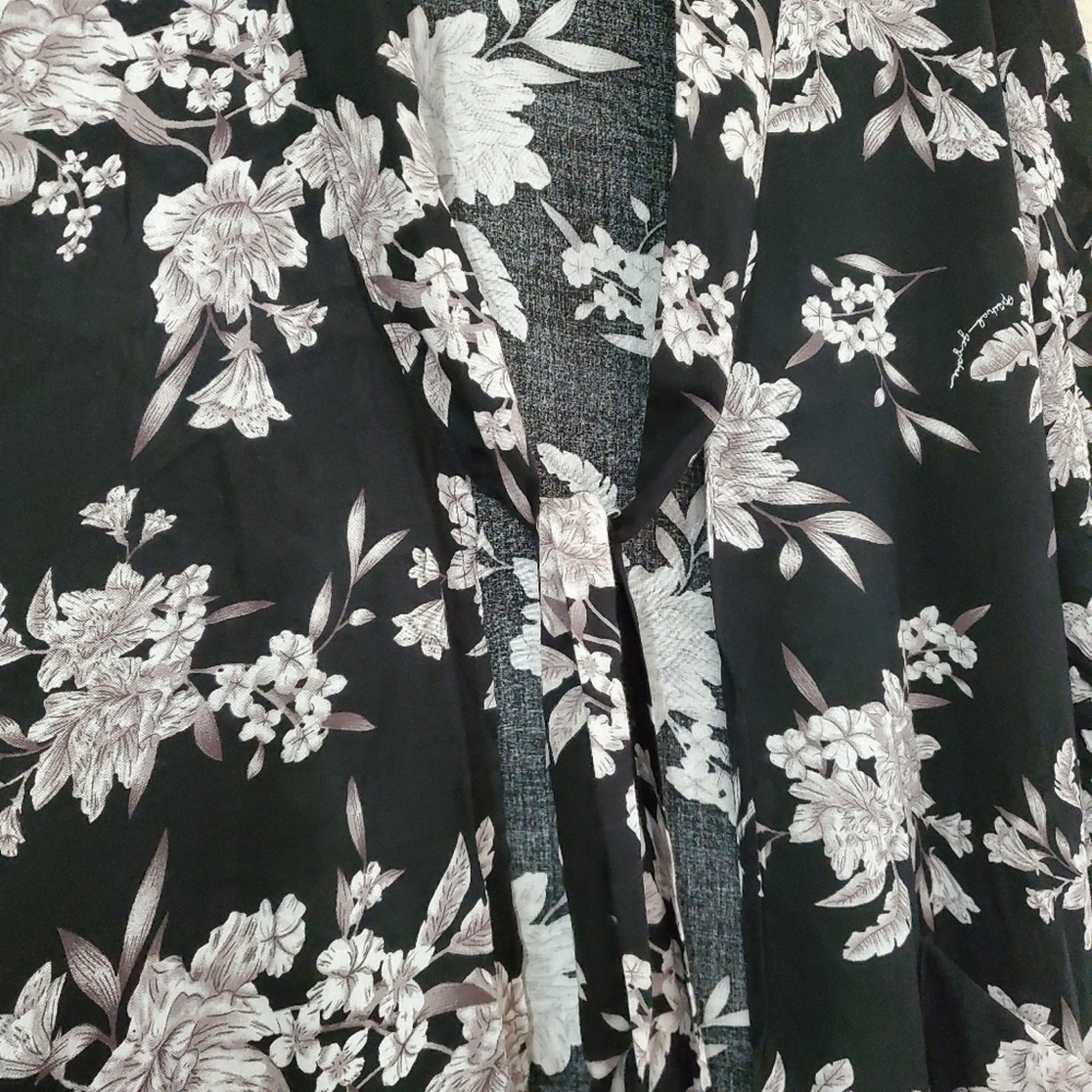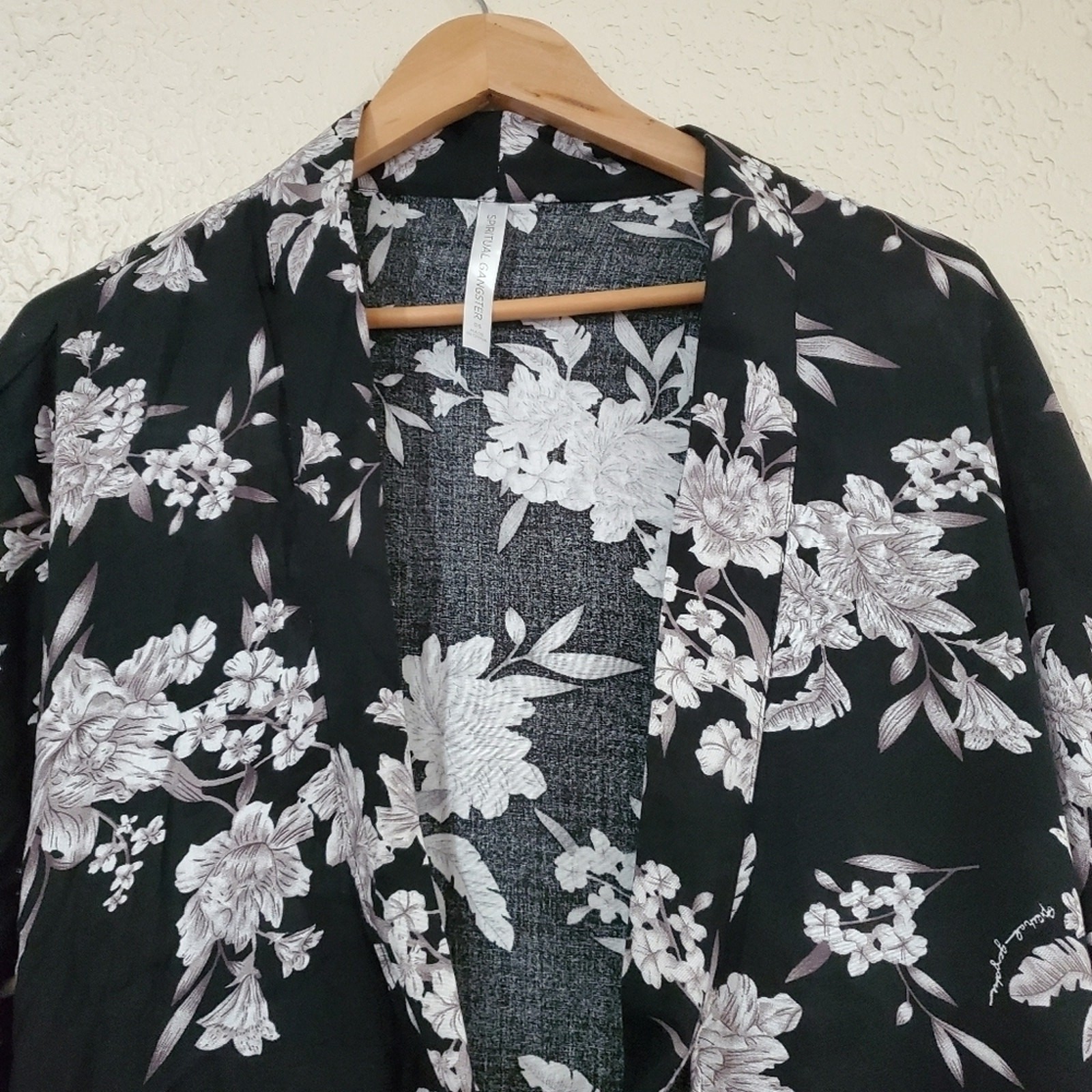 как выглядит Spiritual Gangster Kimono Womens One Size Black White Floral Tie Maxi Boho фото