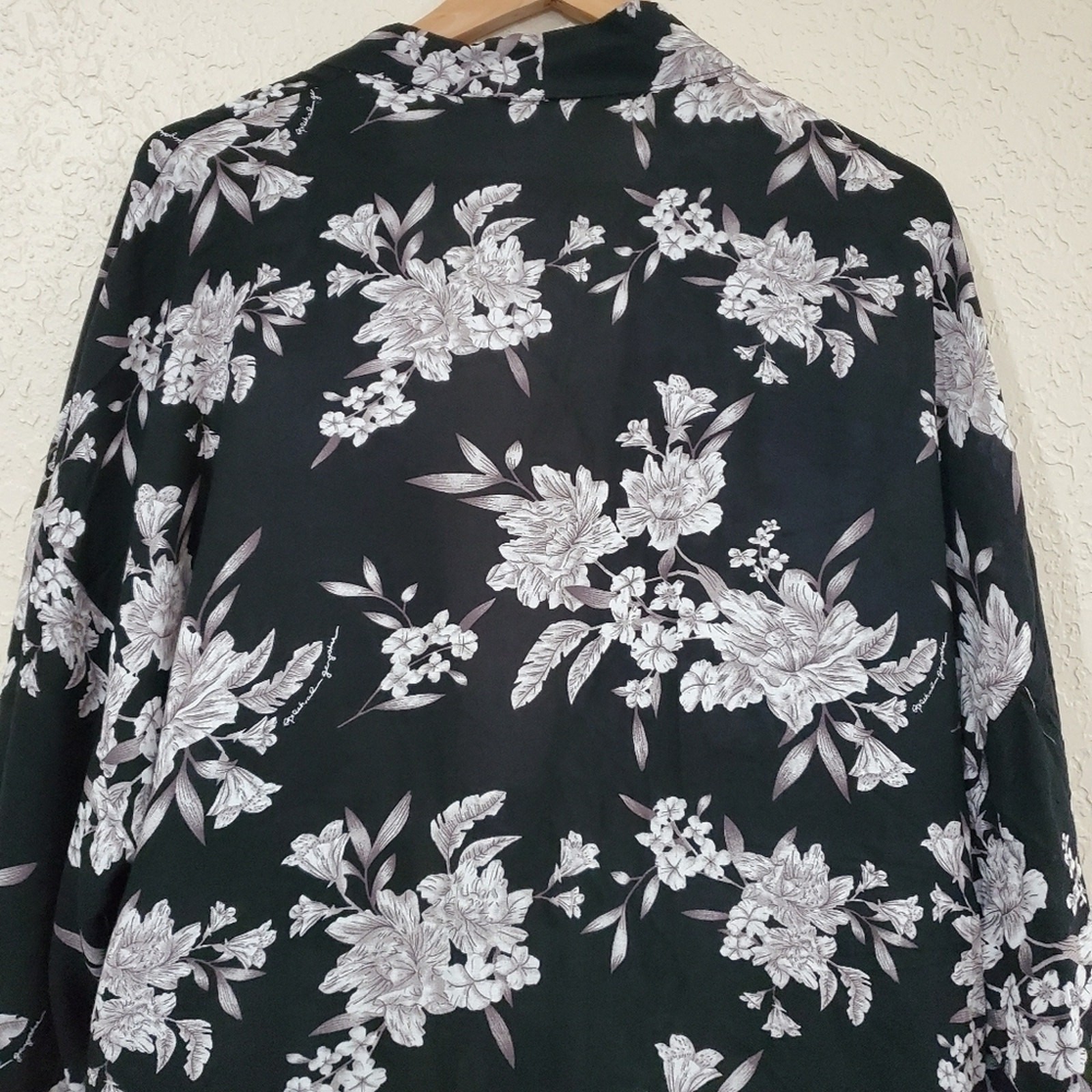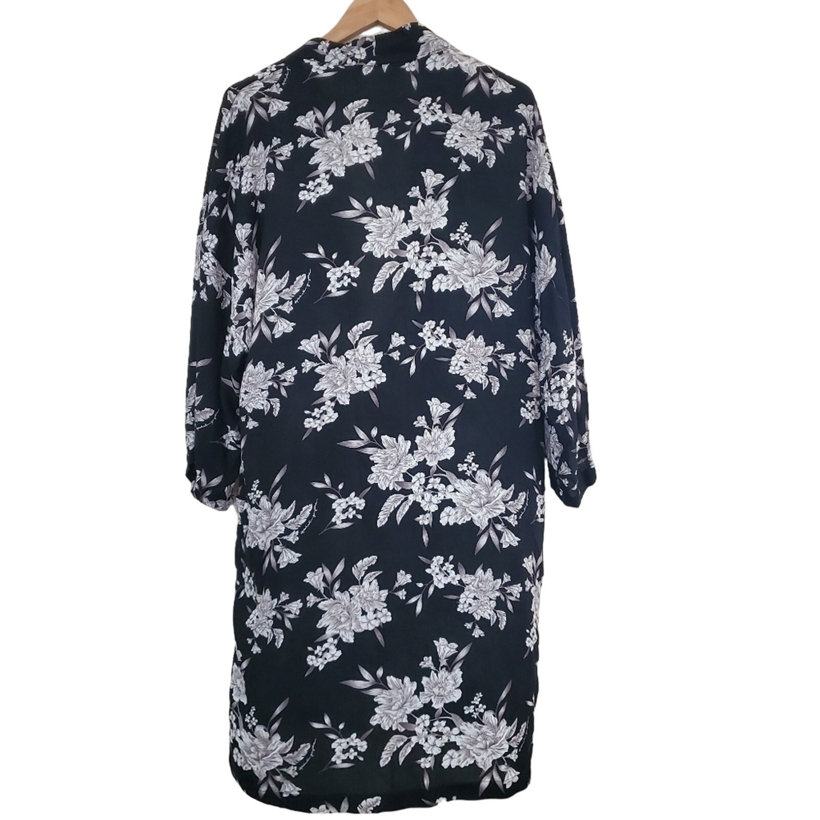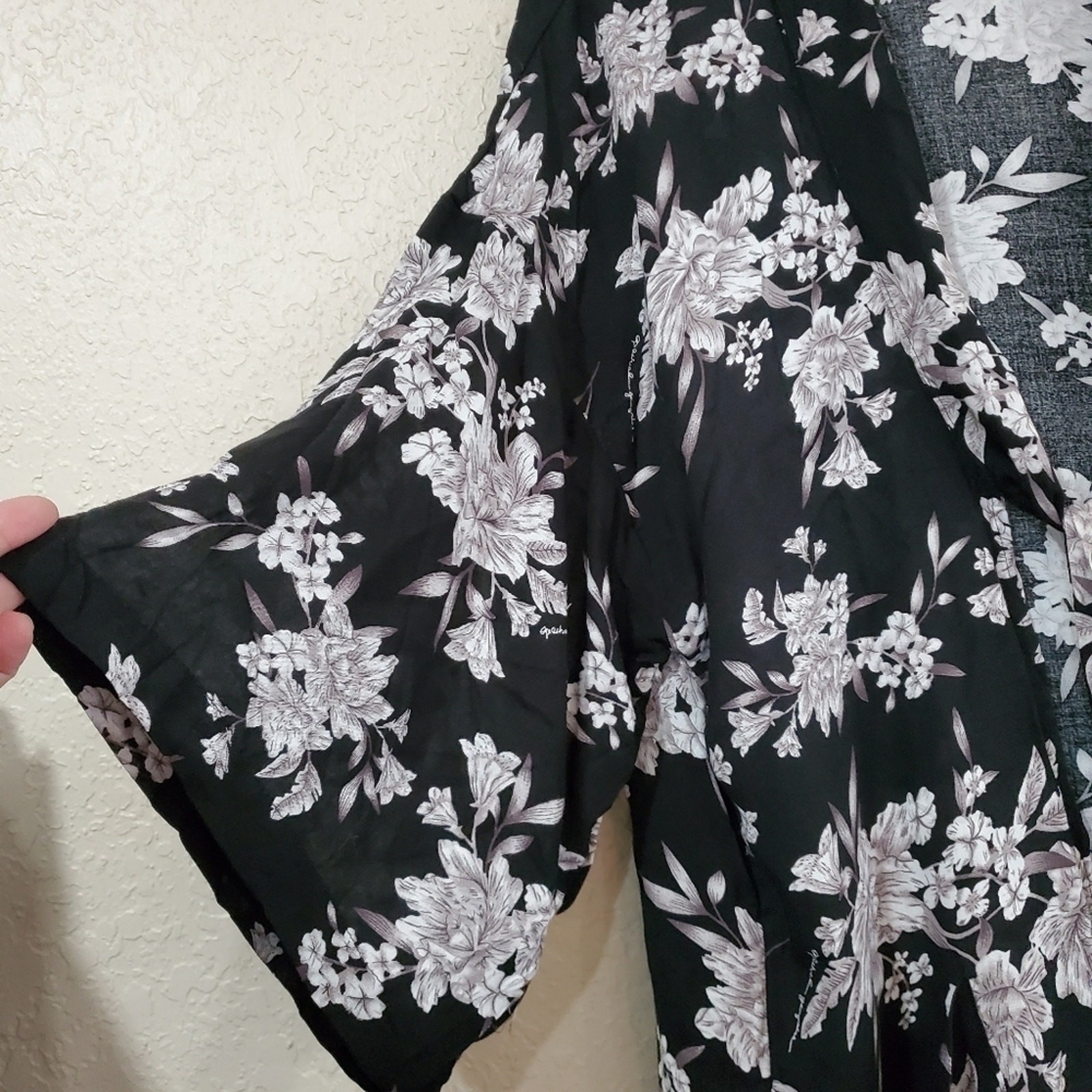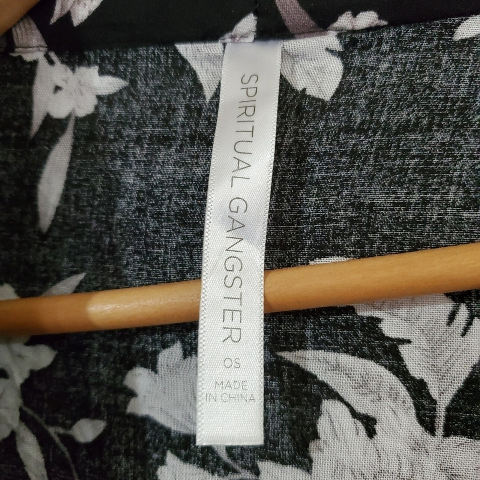 Spiritual Gangster Kimono Womens One Size Black White Floral Tie Maxi Boho