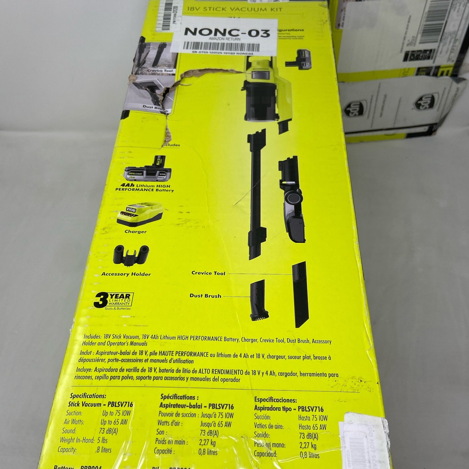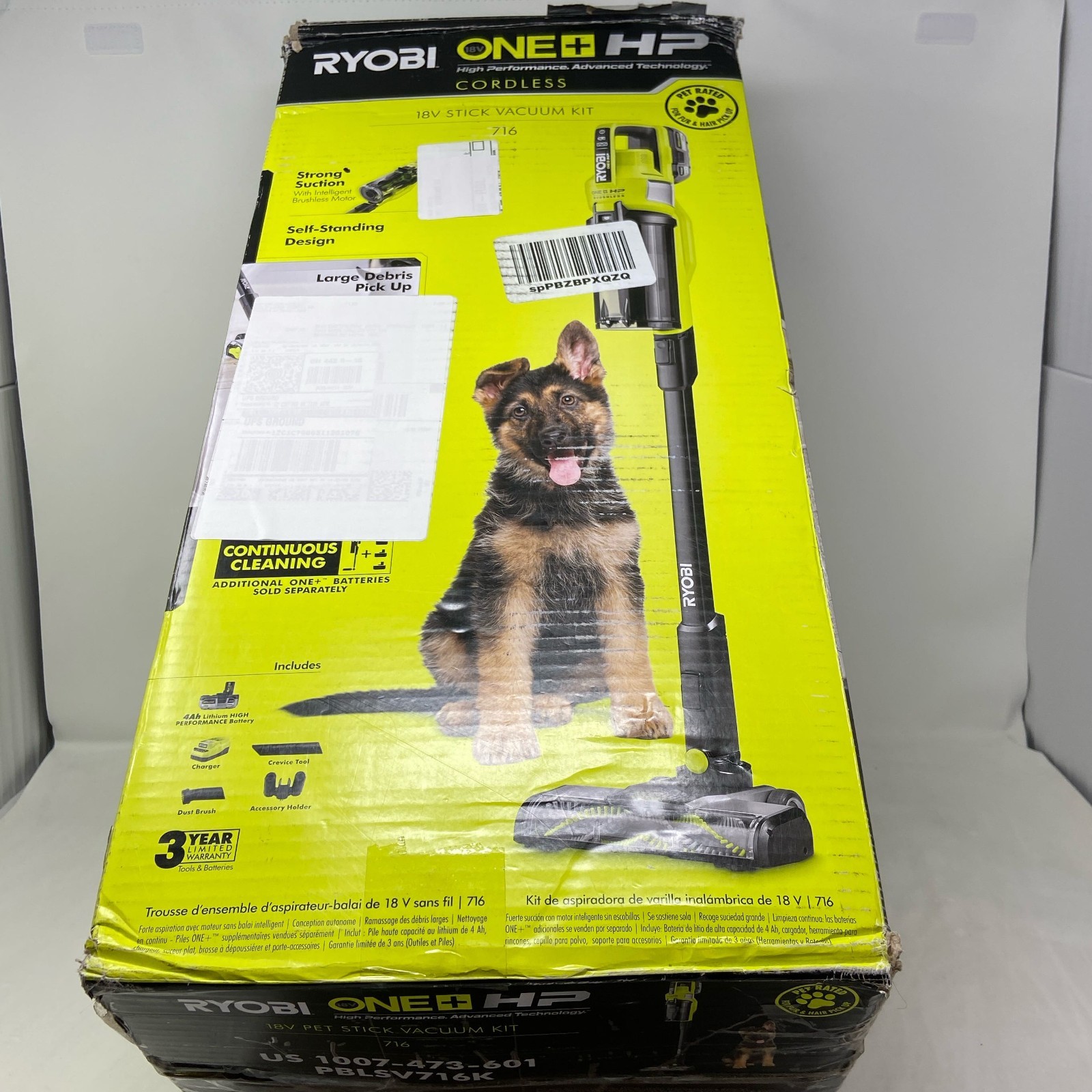 RYOBI ONE HP 18V Brushless Pet Stick Vacuum Kit PBLSV716K - Green/Black - 4.0Ah