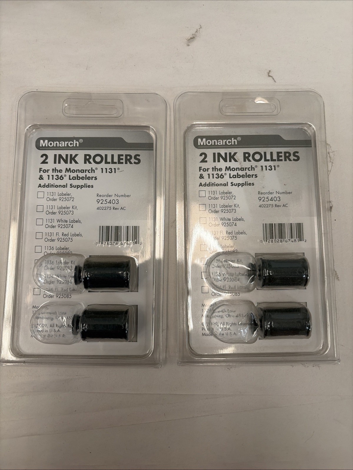 как выглядит 2 Pack Deal Monarch Ink Rollers 1131 And 1136 Labelers Black 925403 New Sealed фото