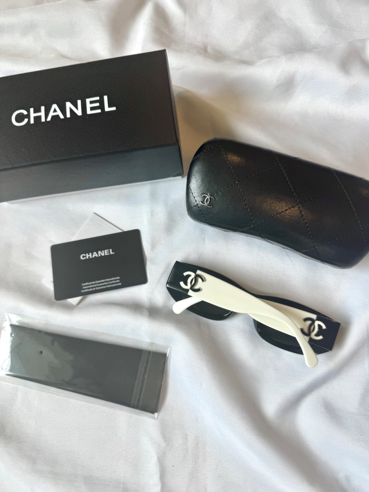 как выглядит CHANEL 5525 POLARIZED BLACK WHITE RECTANGLE SUNGLASSES фото