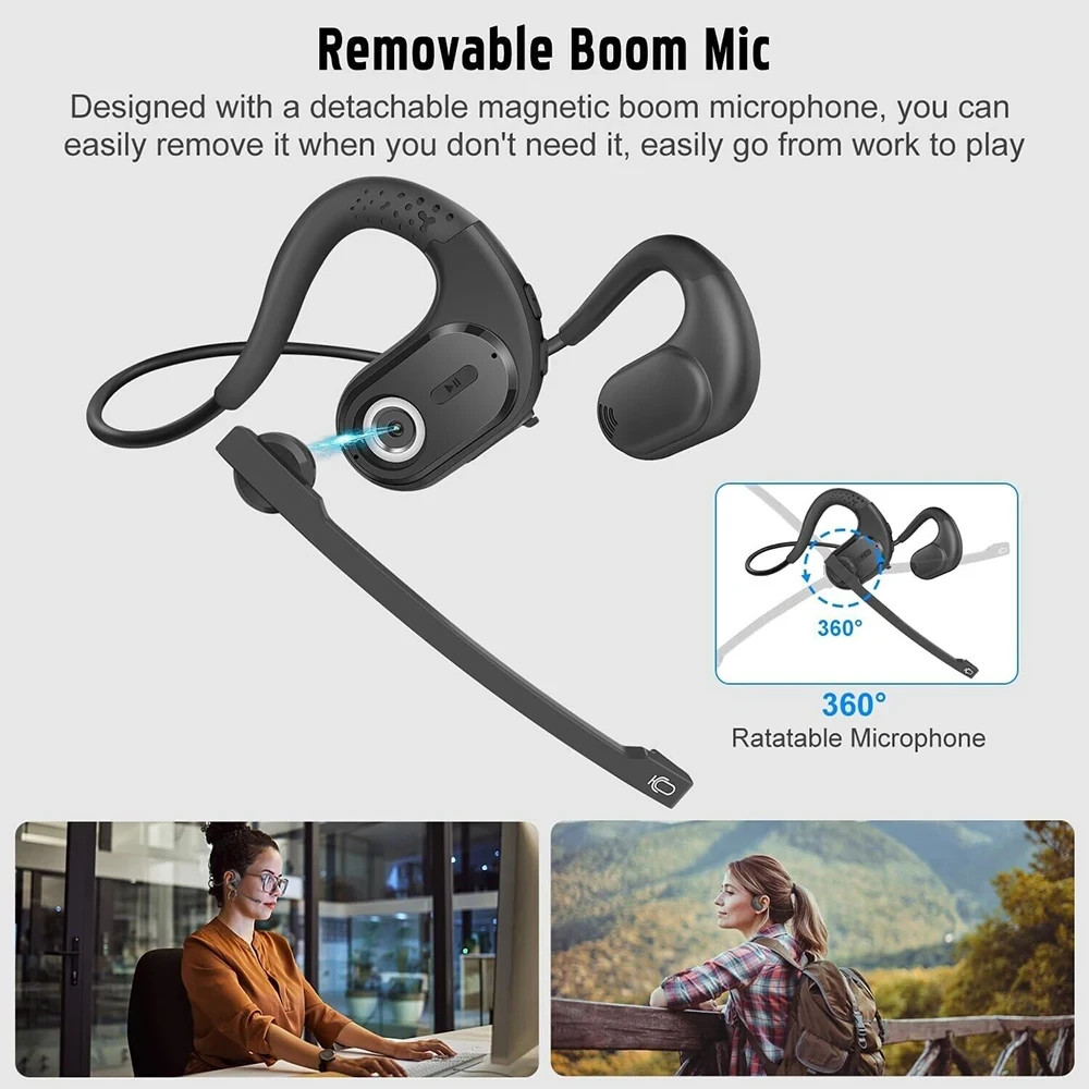 Bluetooth Headset Wireless Earphones Open Ear Mic Detachable Mute Button