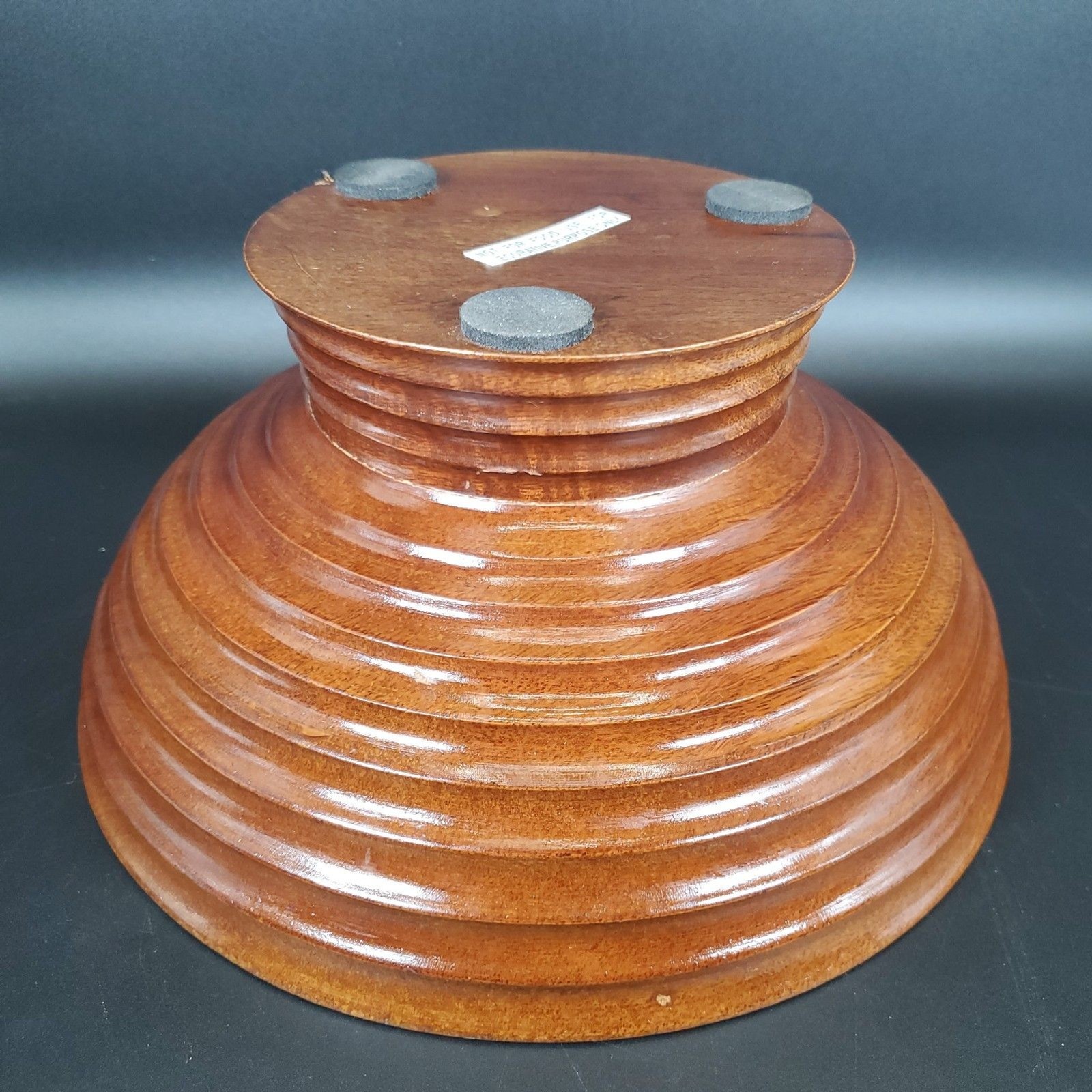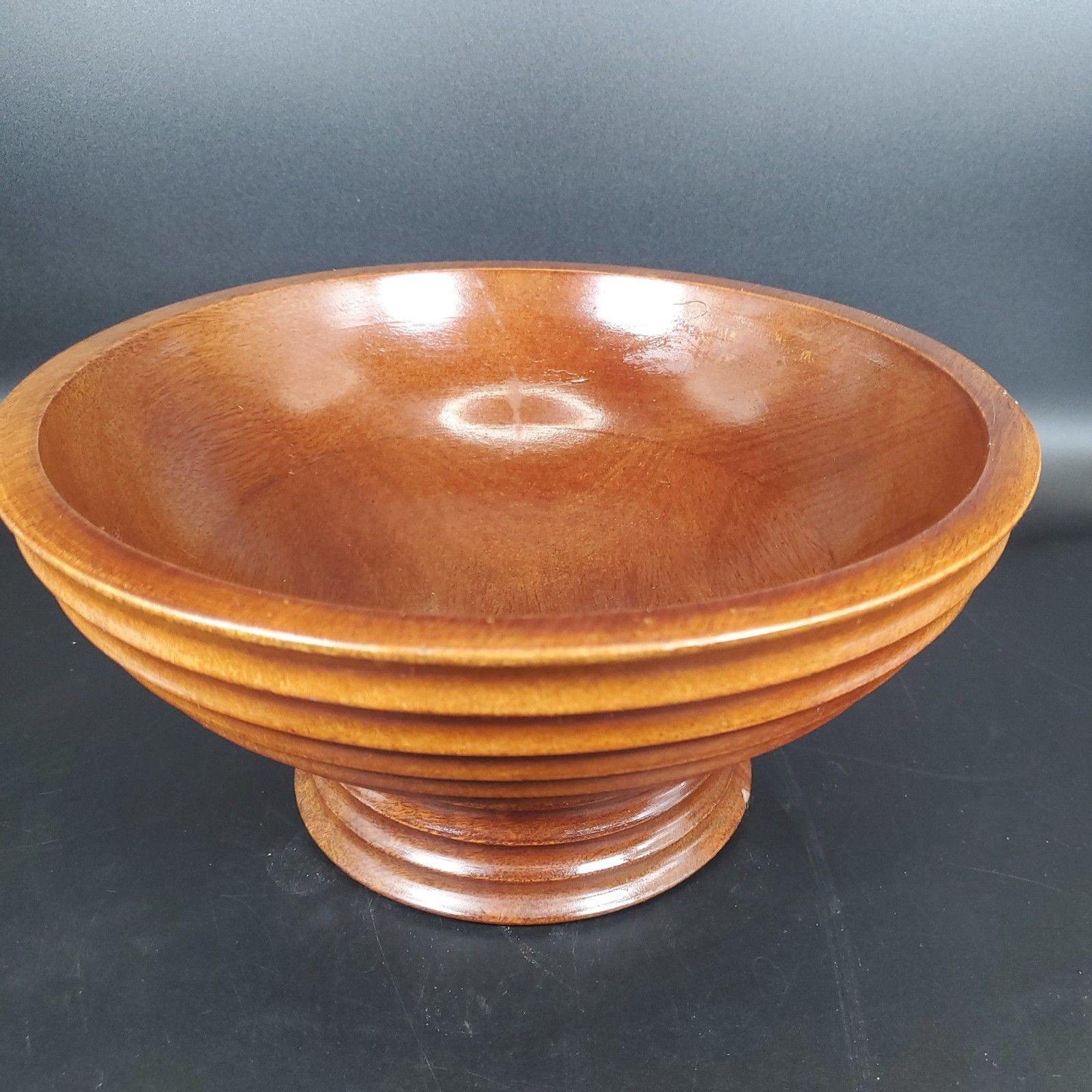 как выглядит Vintage Ribbed Wooden Pedestal Bowl Mid Century Turned Wood Decor фото