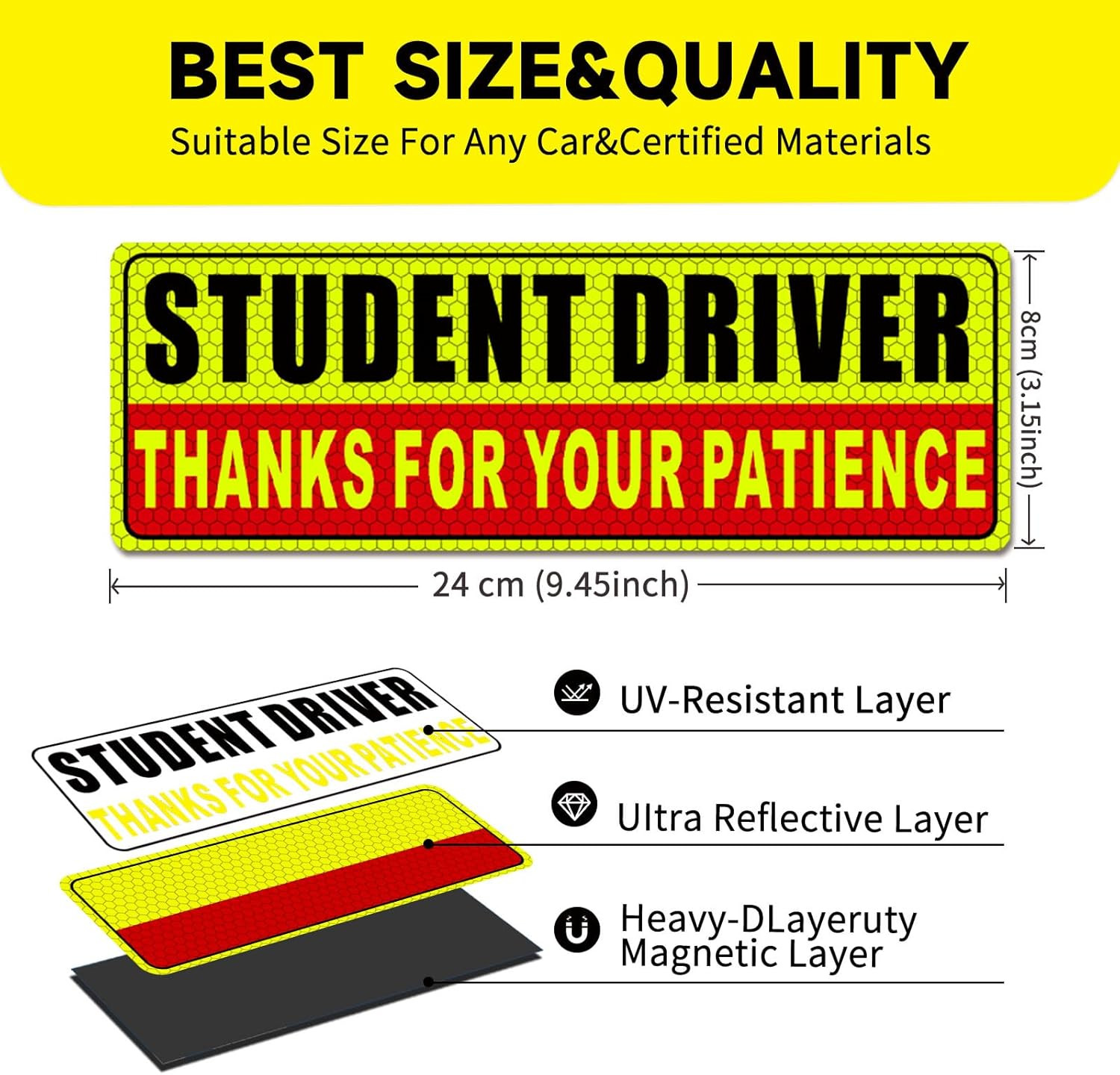 • Student Driver Magnet for Car Safety Warning Please Be Patient New Driver Sti...