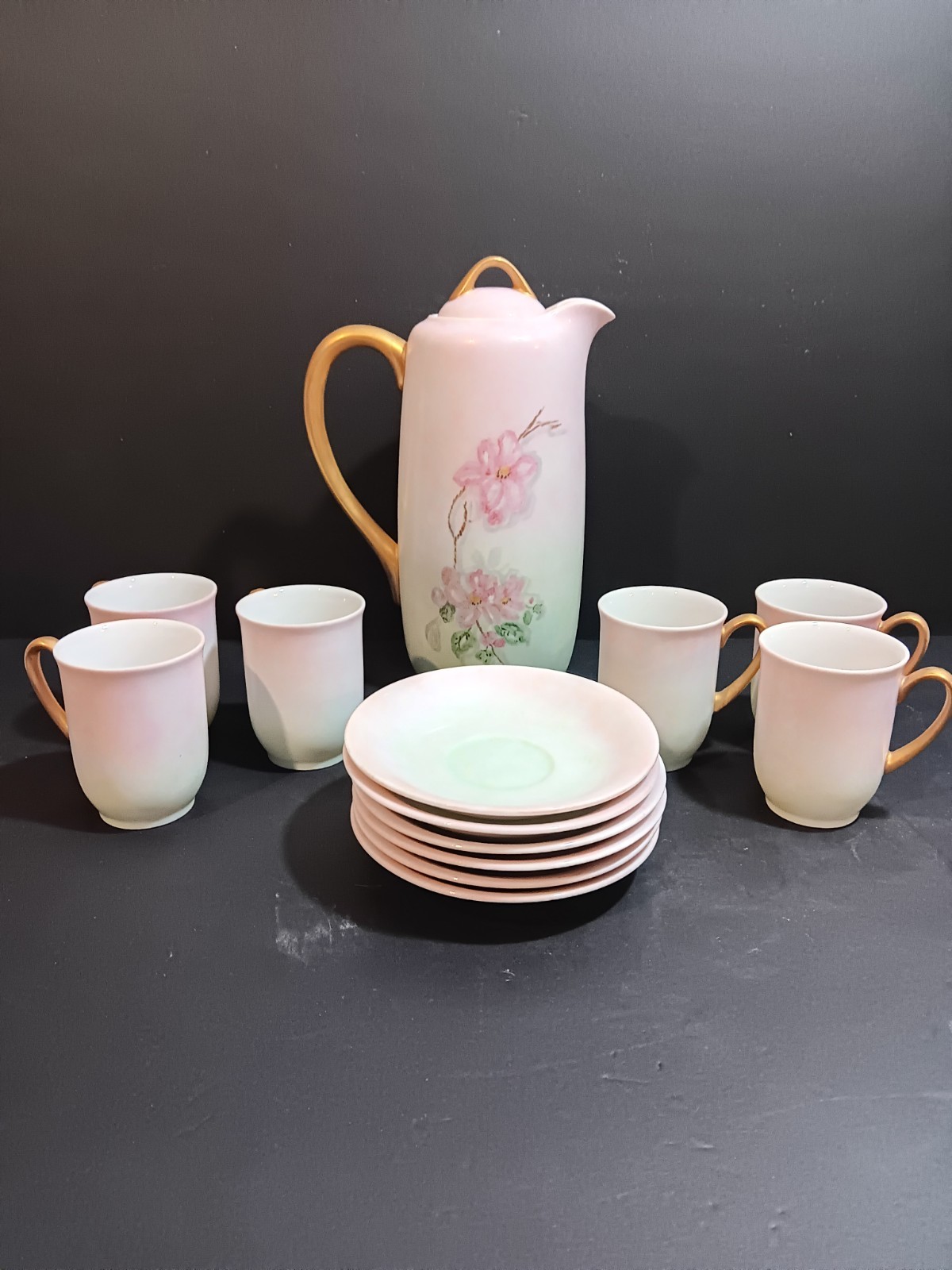 • Vintage 14Pc Porcelain Tea Set, Hand Painted, Artist Signed EB Very Elegant