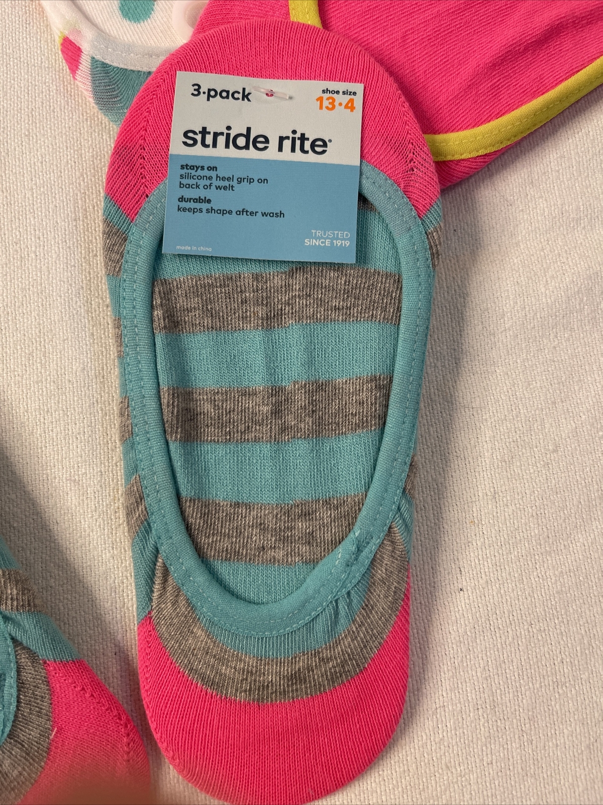 как выглядит NEW -2- Three Pack Stride Rite Girls No Show Cotton Socks Medium 13-4 фото