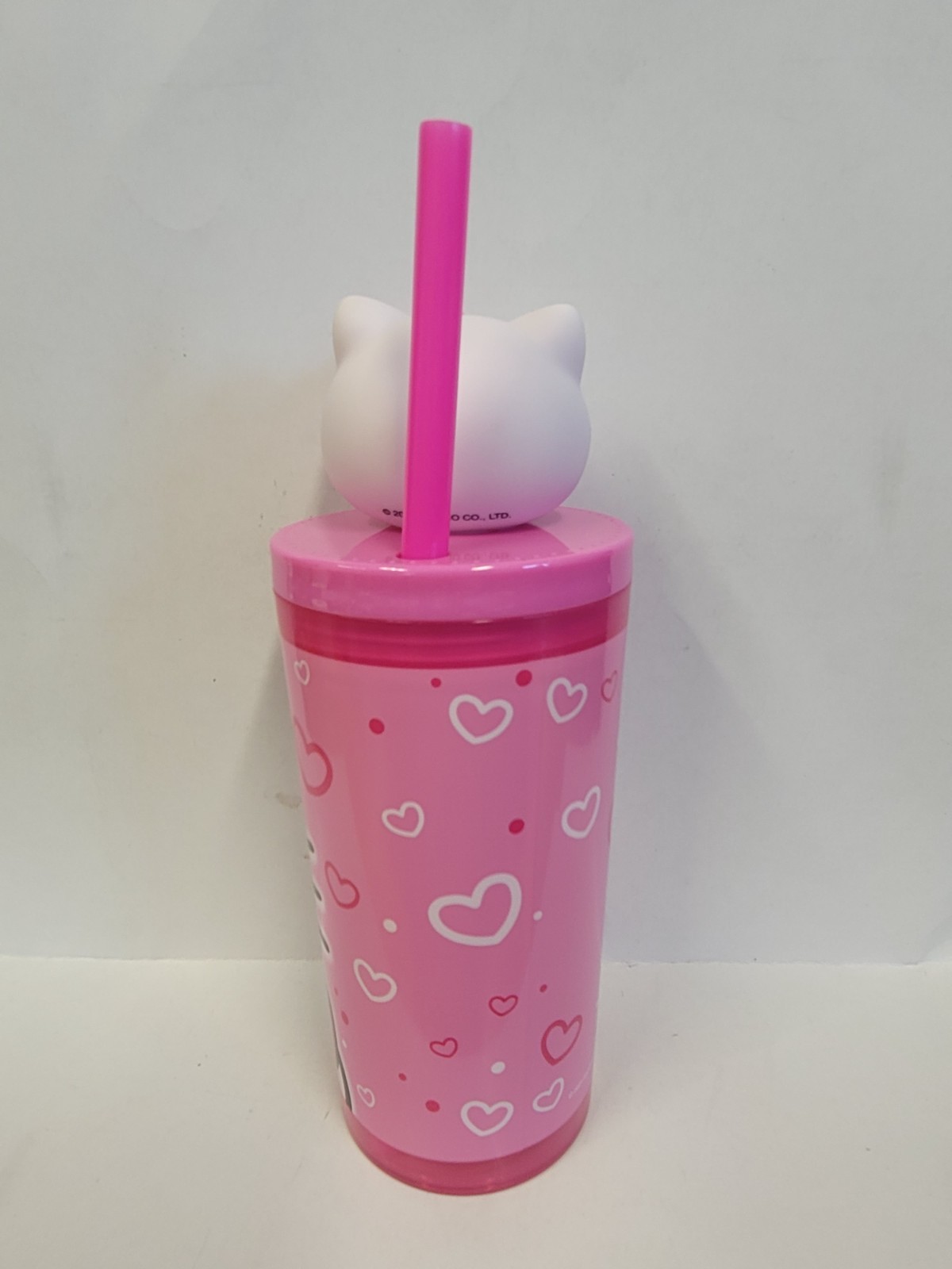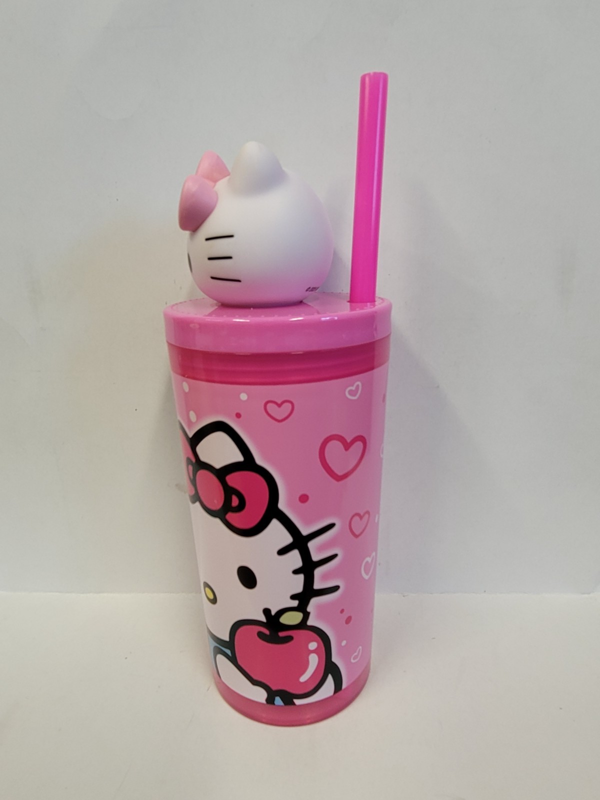 как выглядит Water Bottle - Hello Kitty Friends Pink 7" Plastic 12oz Straw Tumbler 3D Head фото
