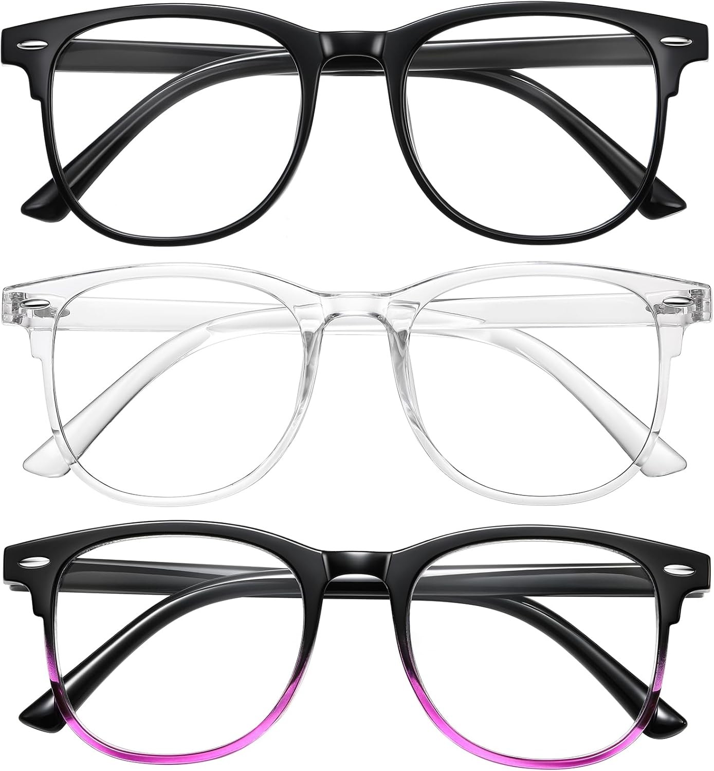 3 PACK BLUE LIGHT BLOCKING GLASSES ROUND COMPUTER GAMING EYE STRAIN BEST NEW ONE