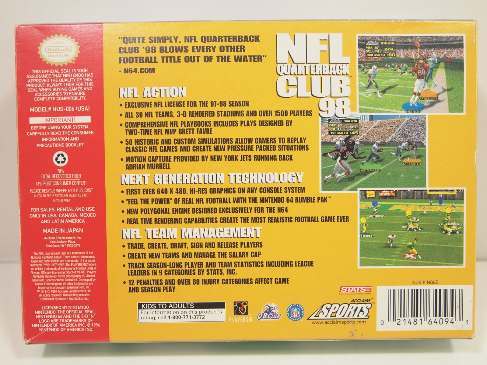 как выглядит NFL Quarterback Club 98 Nintendo 64 N64 Authentic BOX ONLY фото