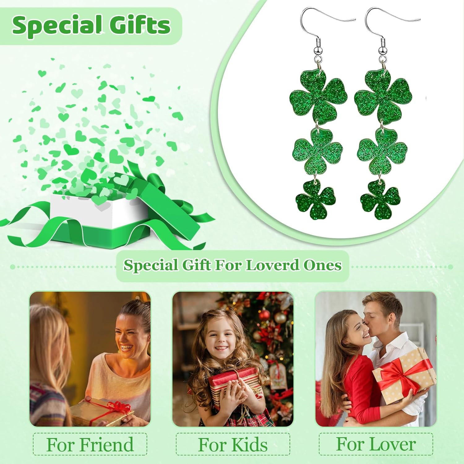St. Patrick'S Day Earrings: Green Shamrock Dangle Earrings - Stainless Steel, Mo