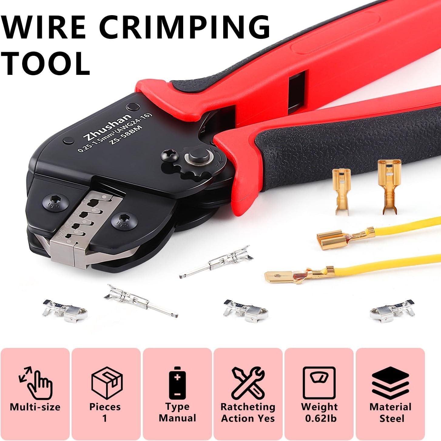 Open Barrel Terminal Wire Crimping Tool with 590PCS JST-SM Connectors Kit- 24-16