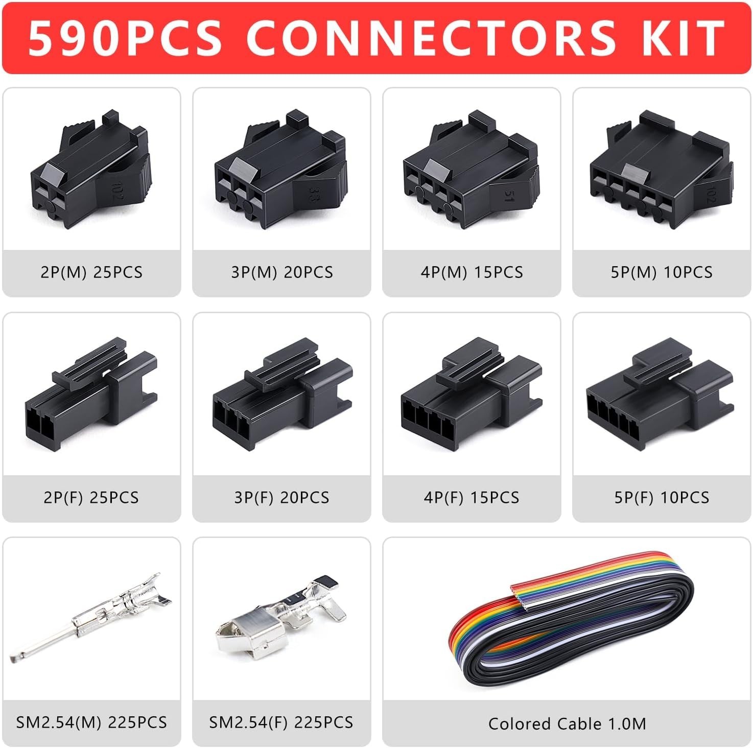 • Open Barrel Terminal Wire Crimping Tool with 590PCS JST-SM Connectors Kit- 24-16