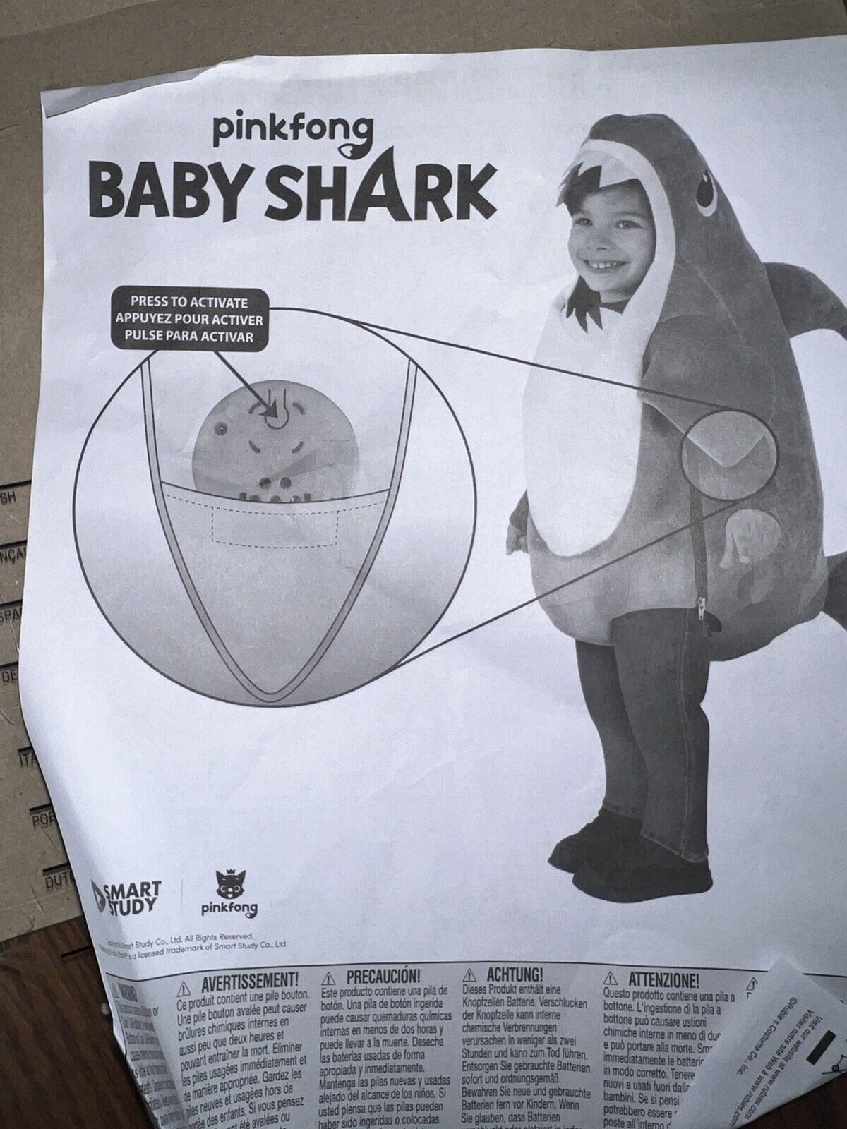 Baby Shark Costume Infant 6-12 mo Pinkfong Romper Sound Box Works Plays Song