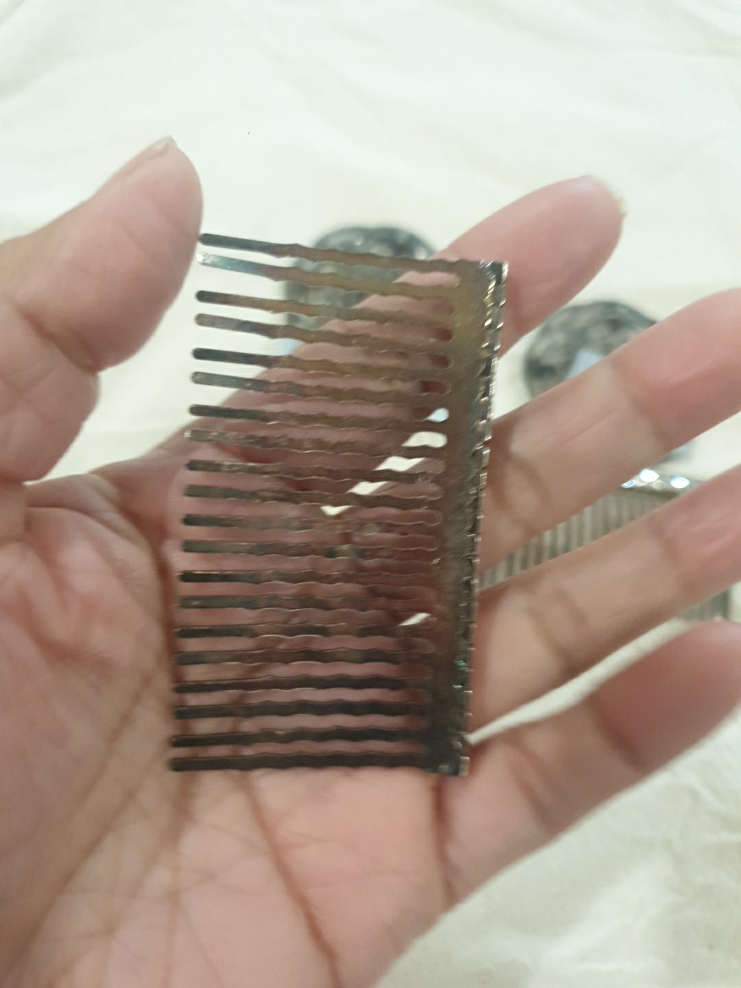 как выглядит VTG 4 Sparkling Metal Older Hair Combs Round Rectangular Rhinestones Wedding фото