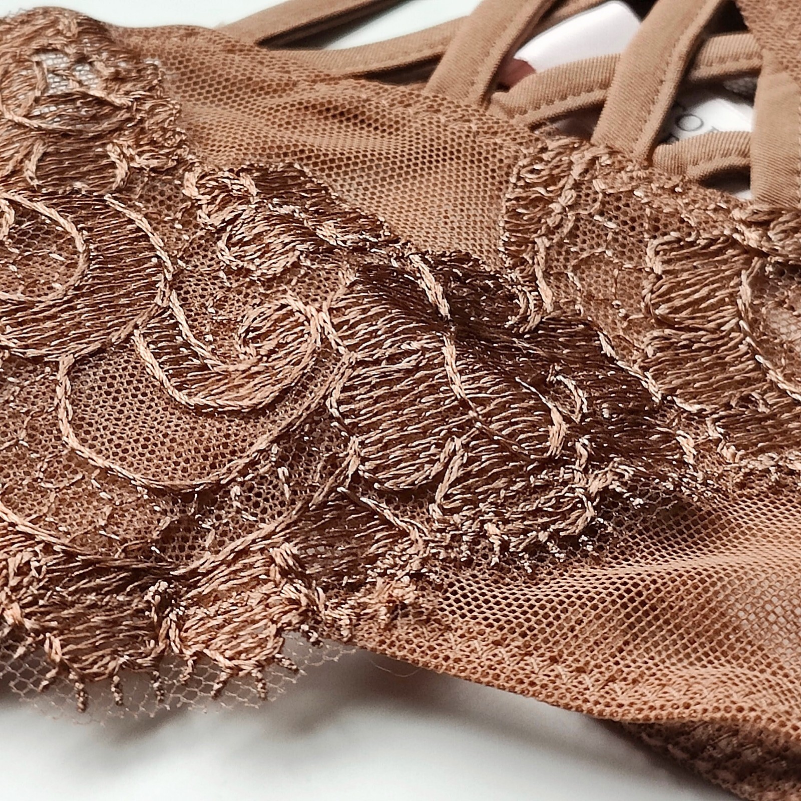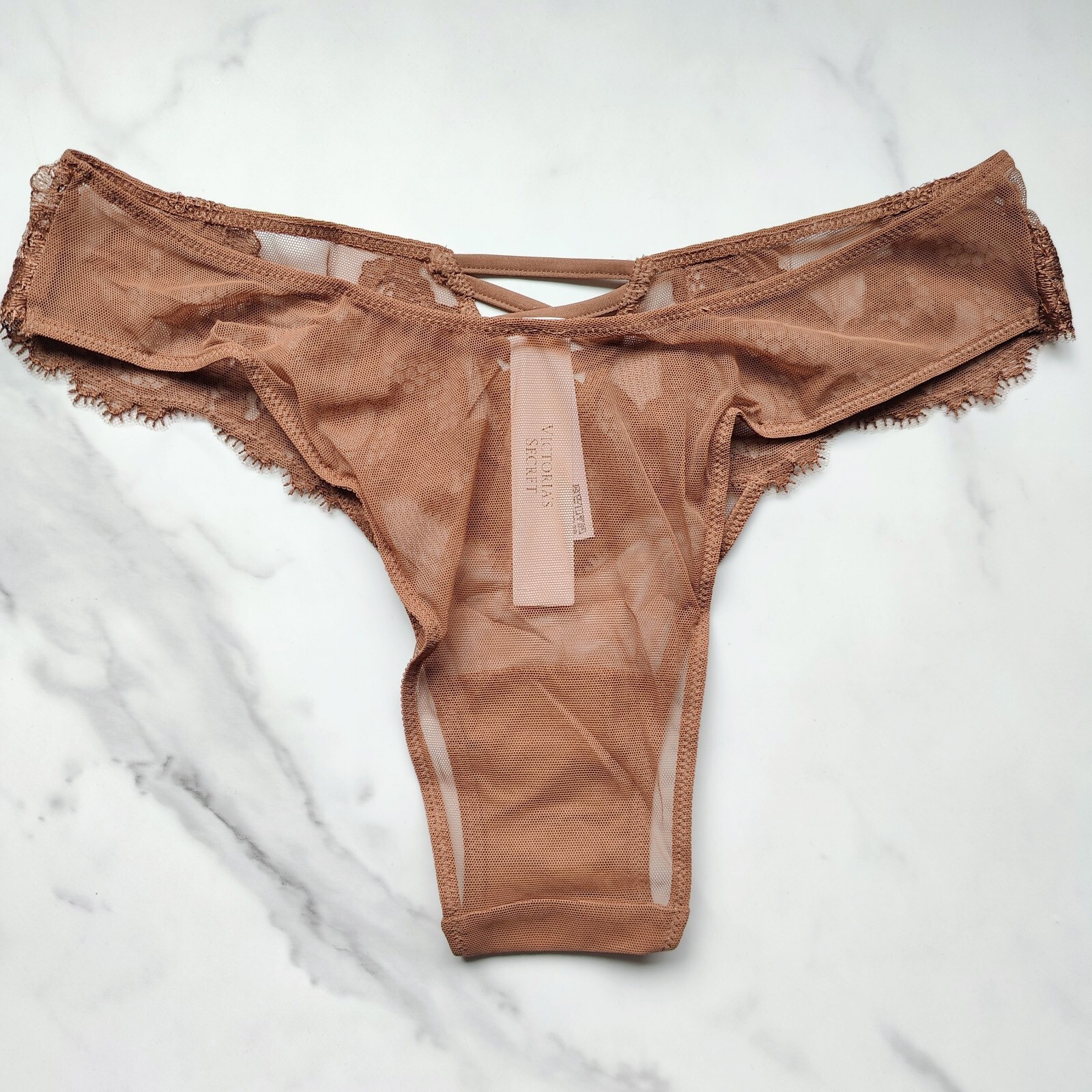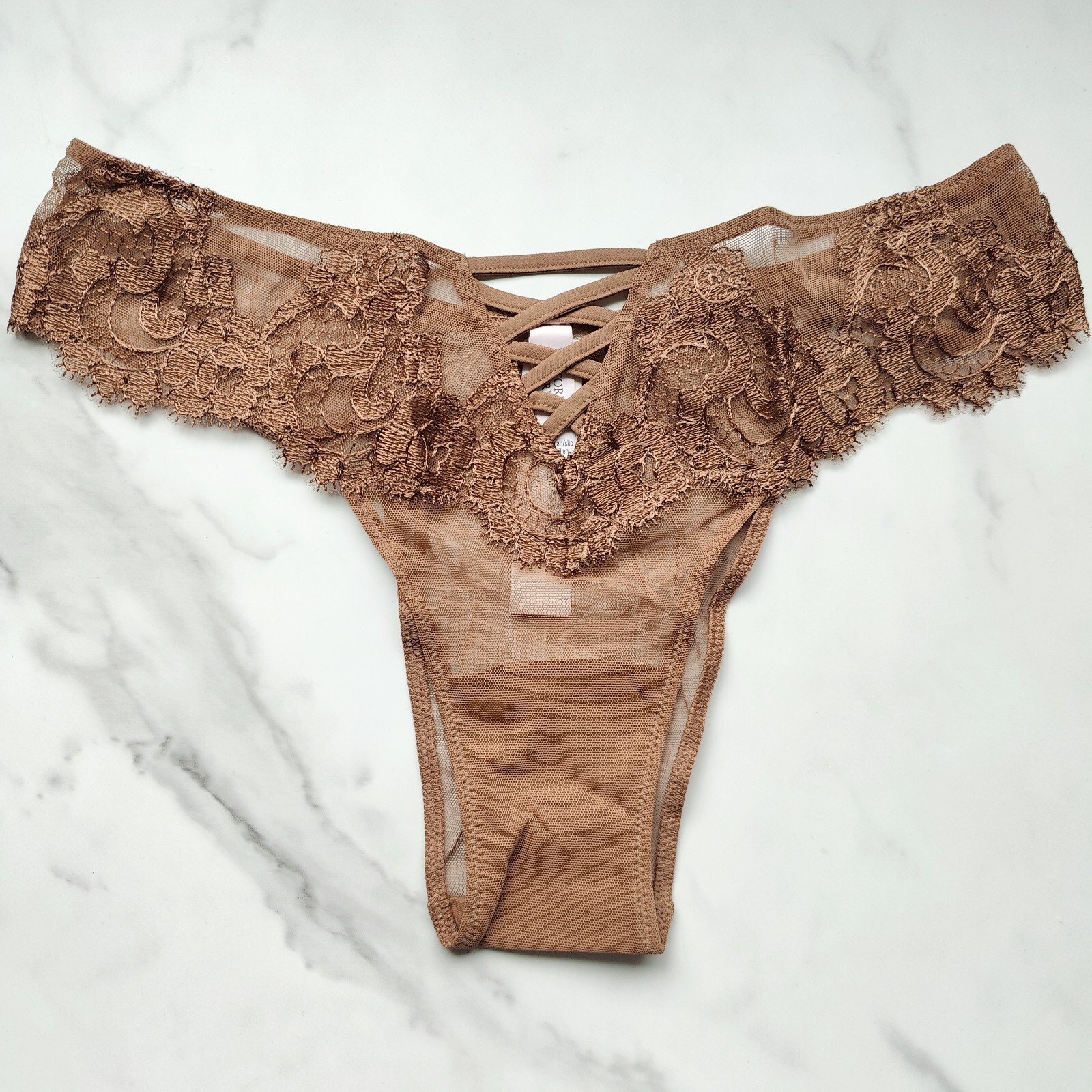 как выглядит Victorias Secret Dream Angels Boho Floral Embroidery Brazilian Panty Caramel фото