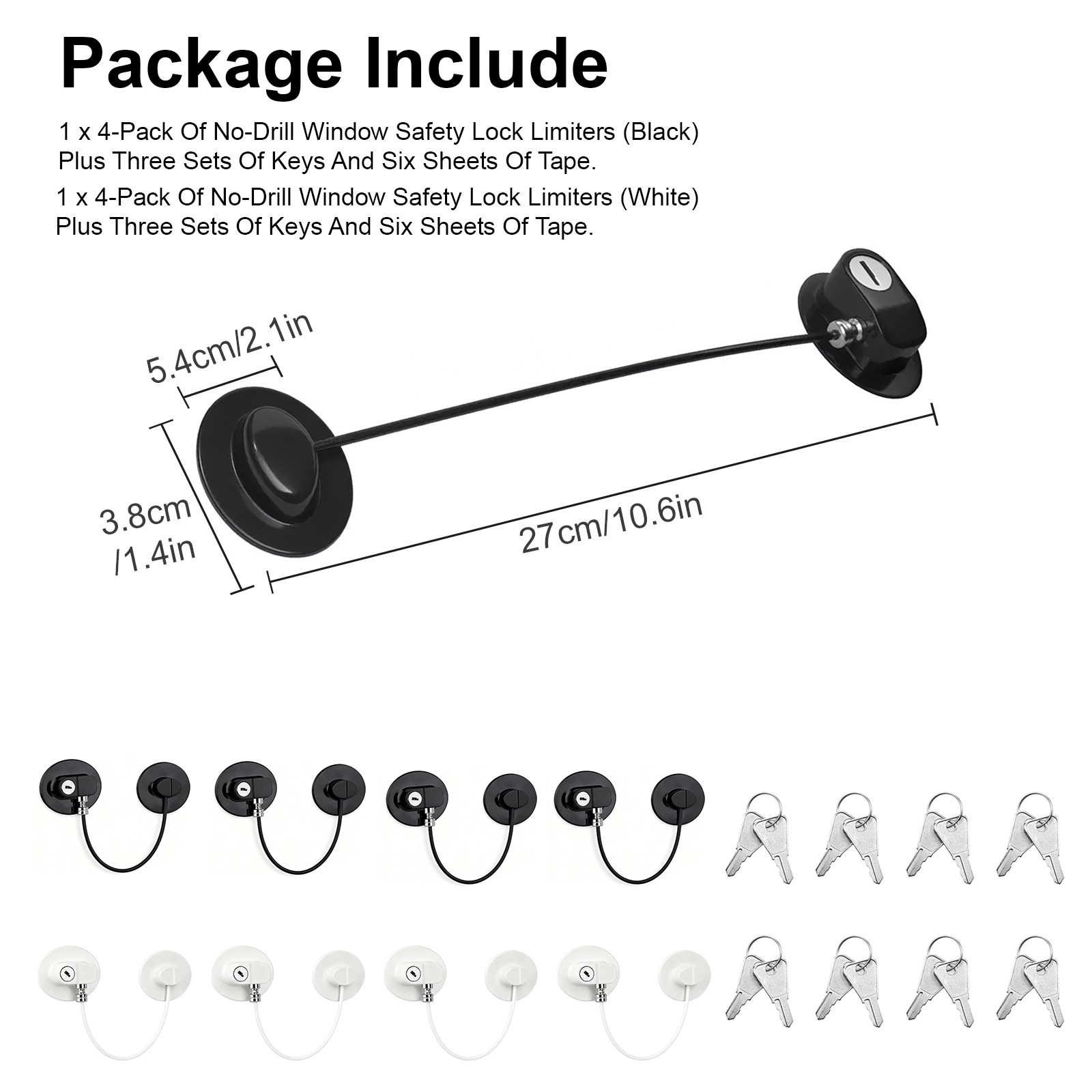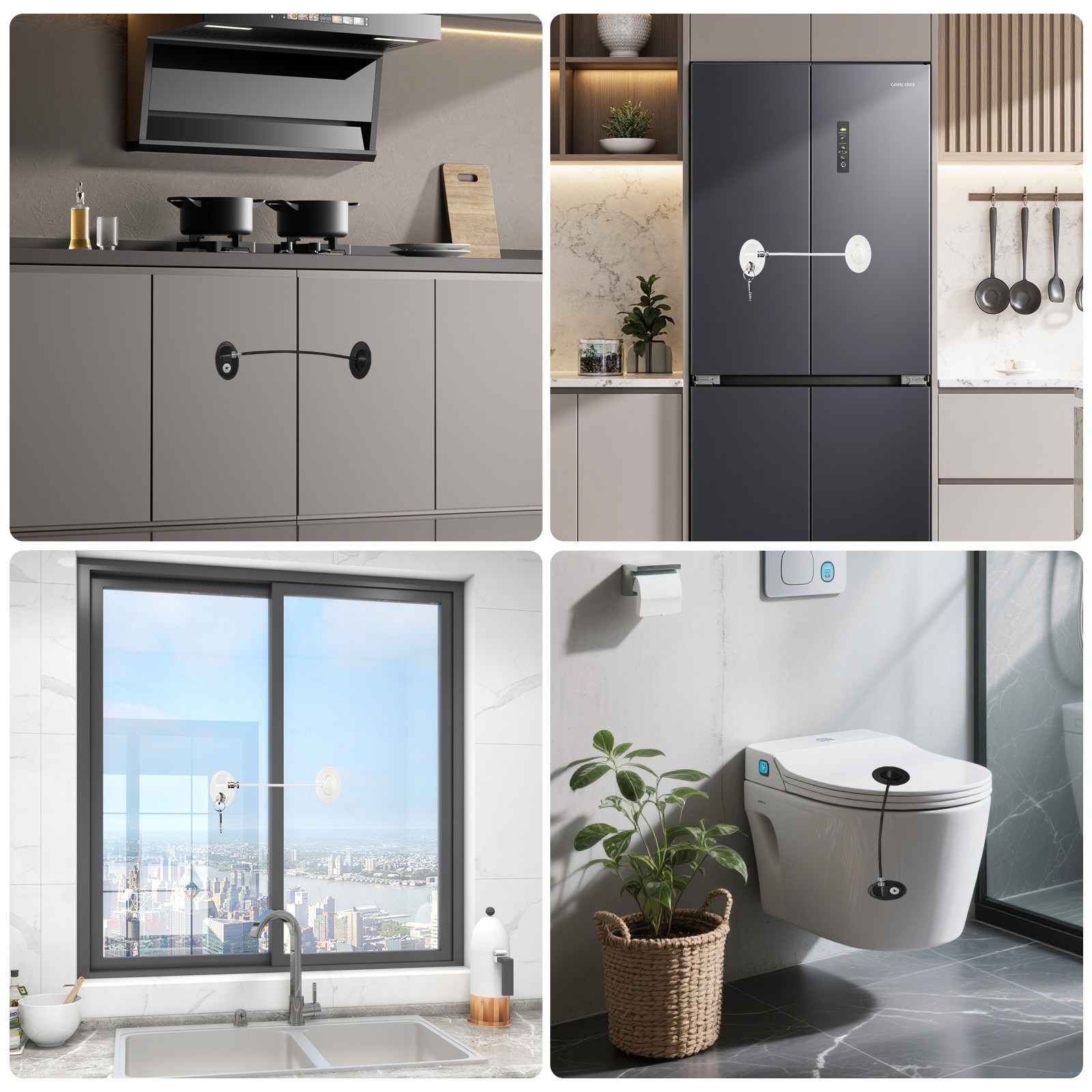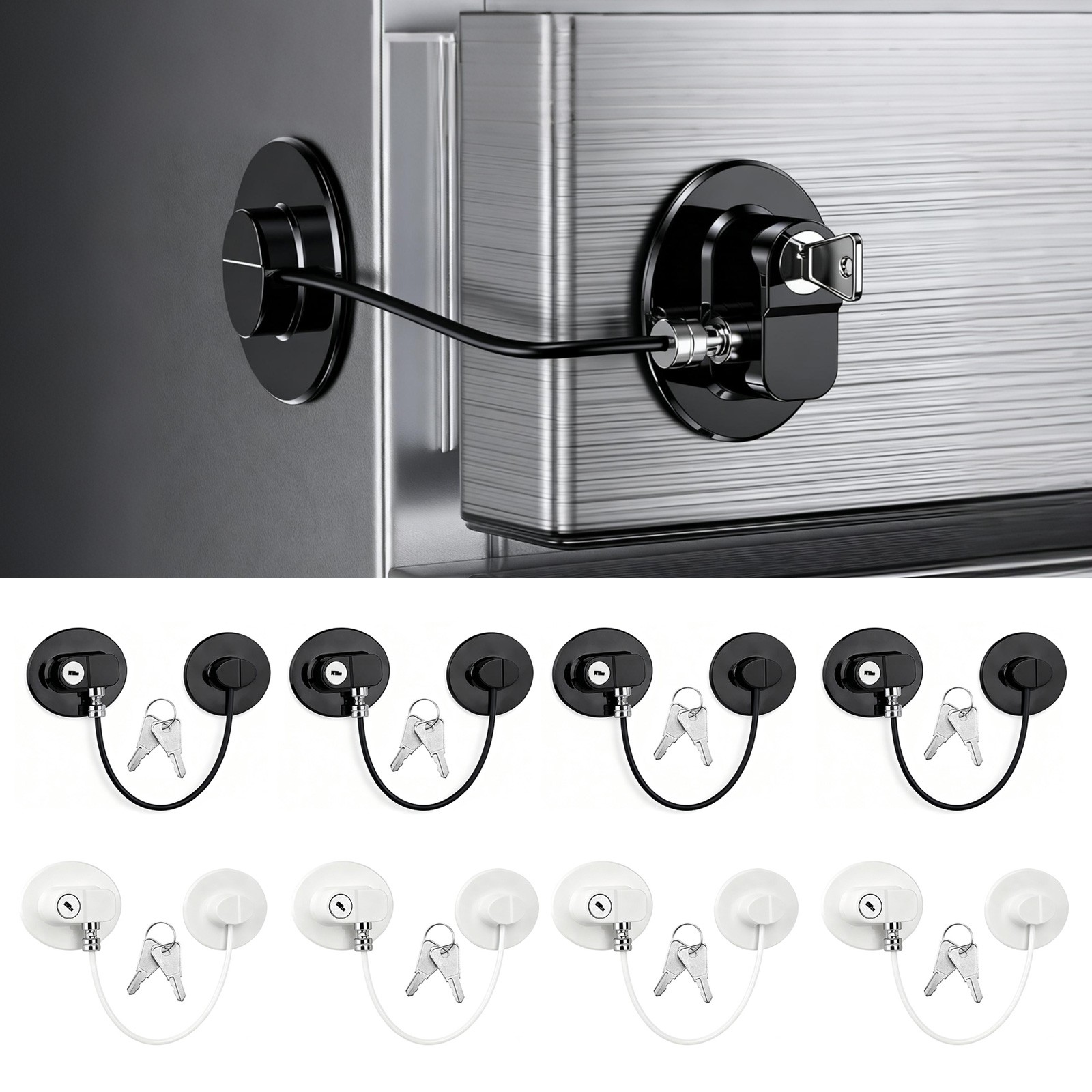 3 PCS No Drill Refrigerator Safety Lock with Key ABS Stainless steel Black White