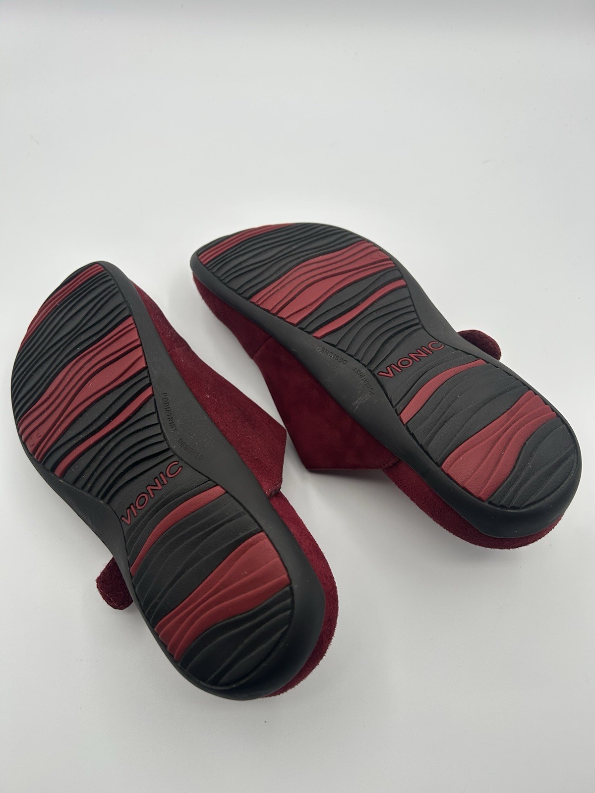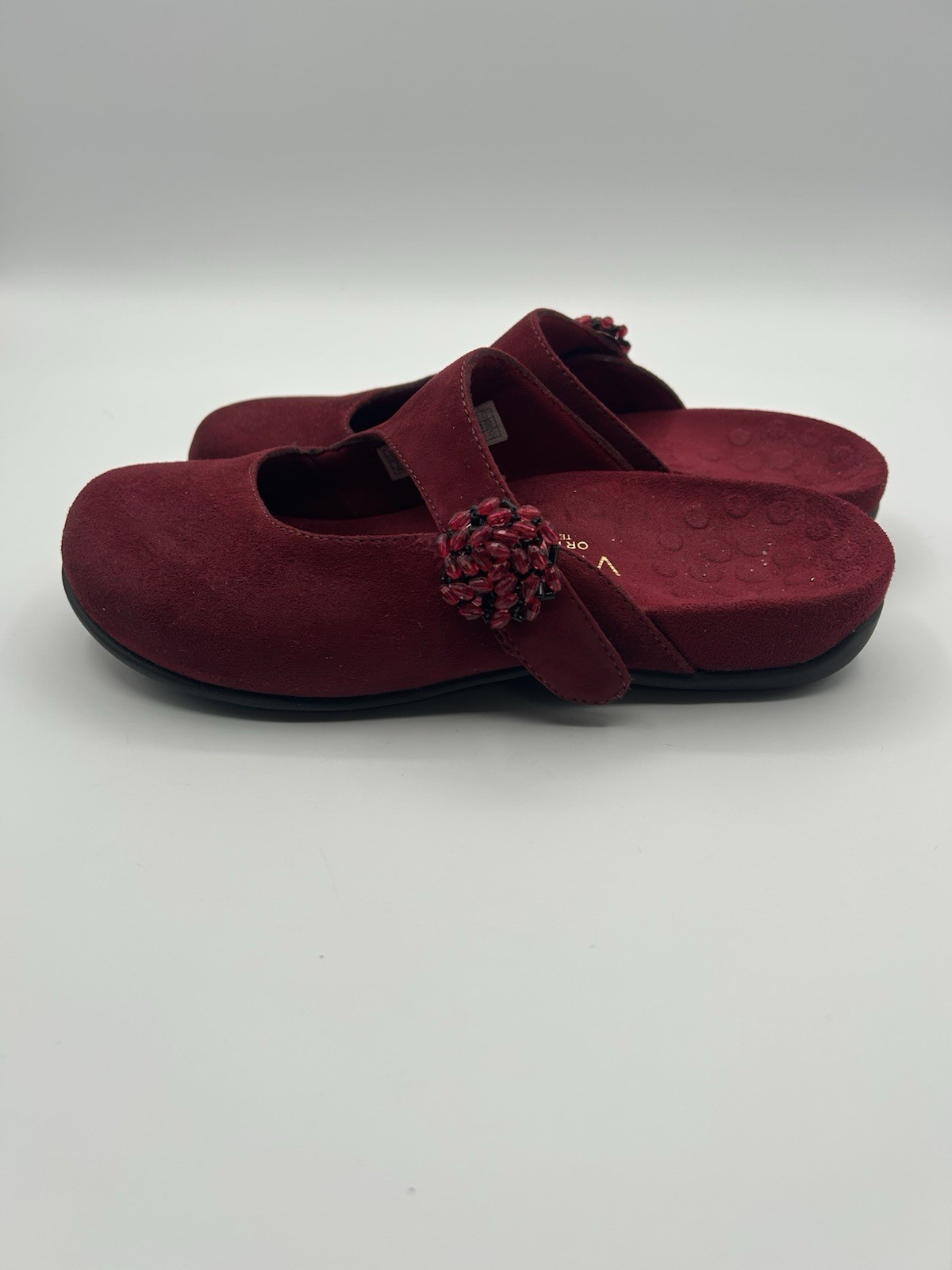 как выглядит Vionic Joan Orthaheel Mule Women s Slip On Shoes Sz5 Suede Floral Accent Merlot фото
