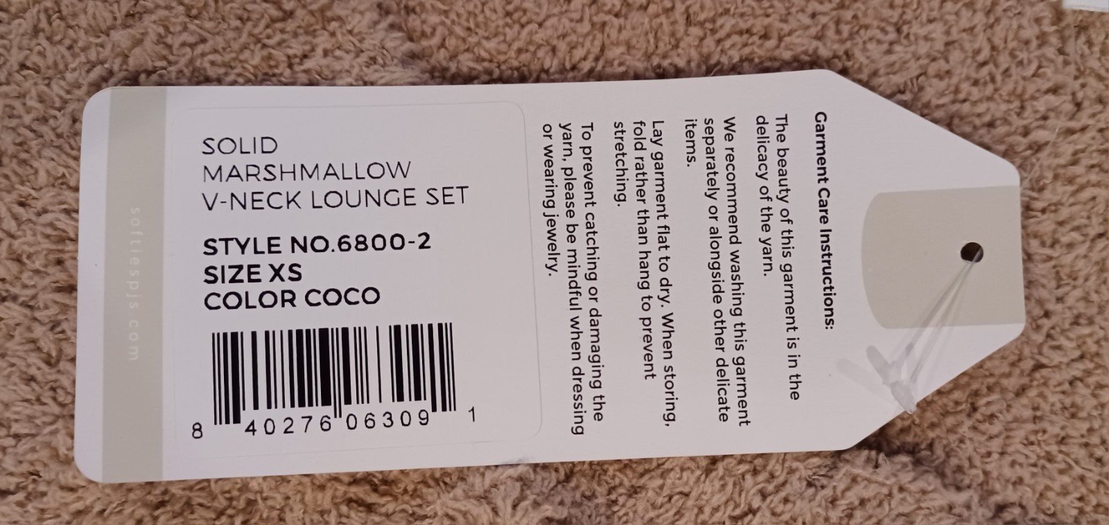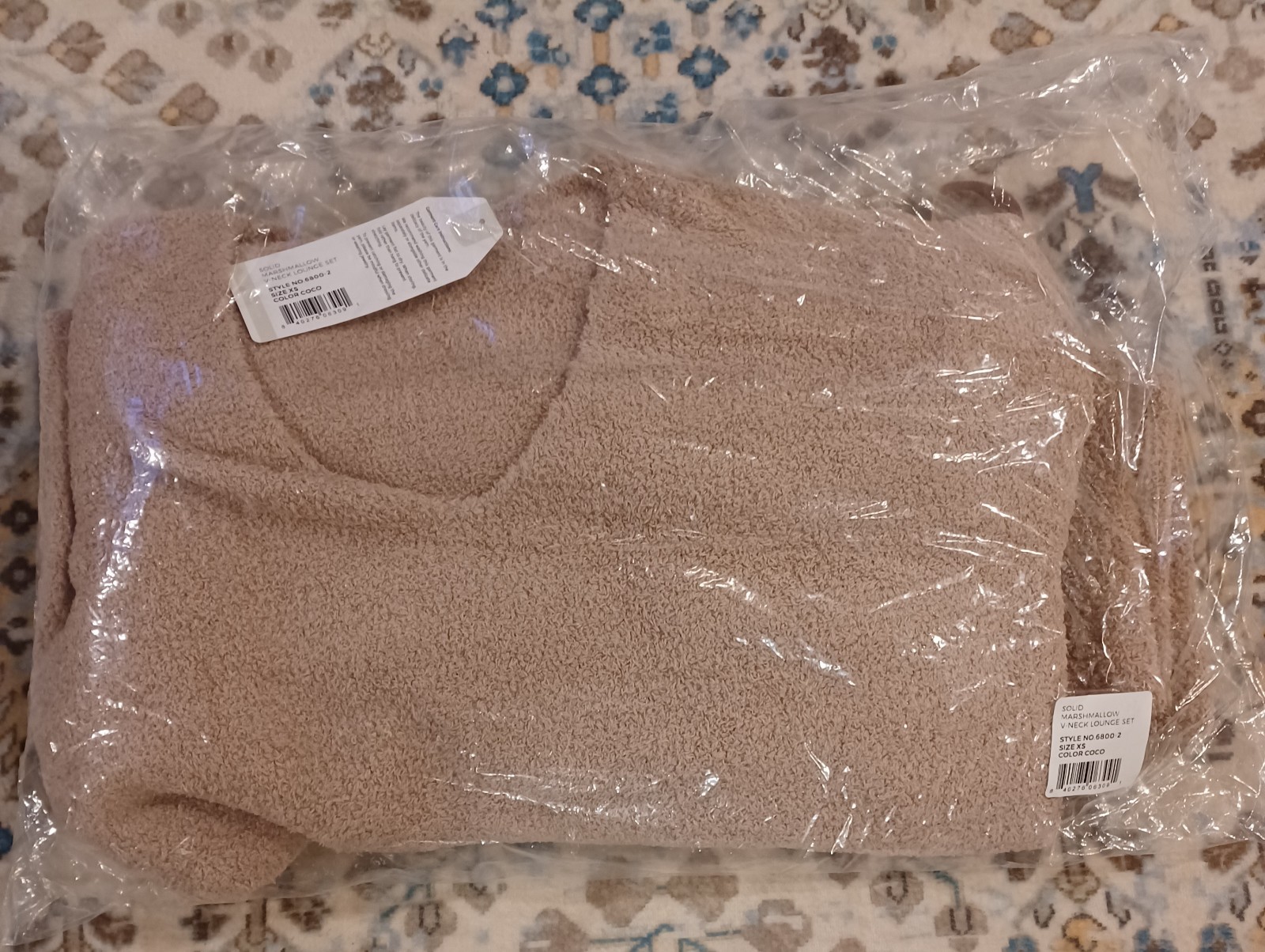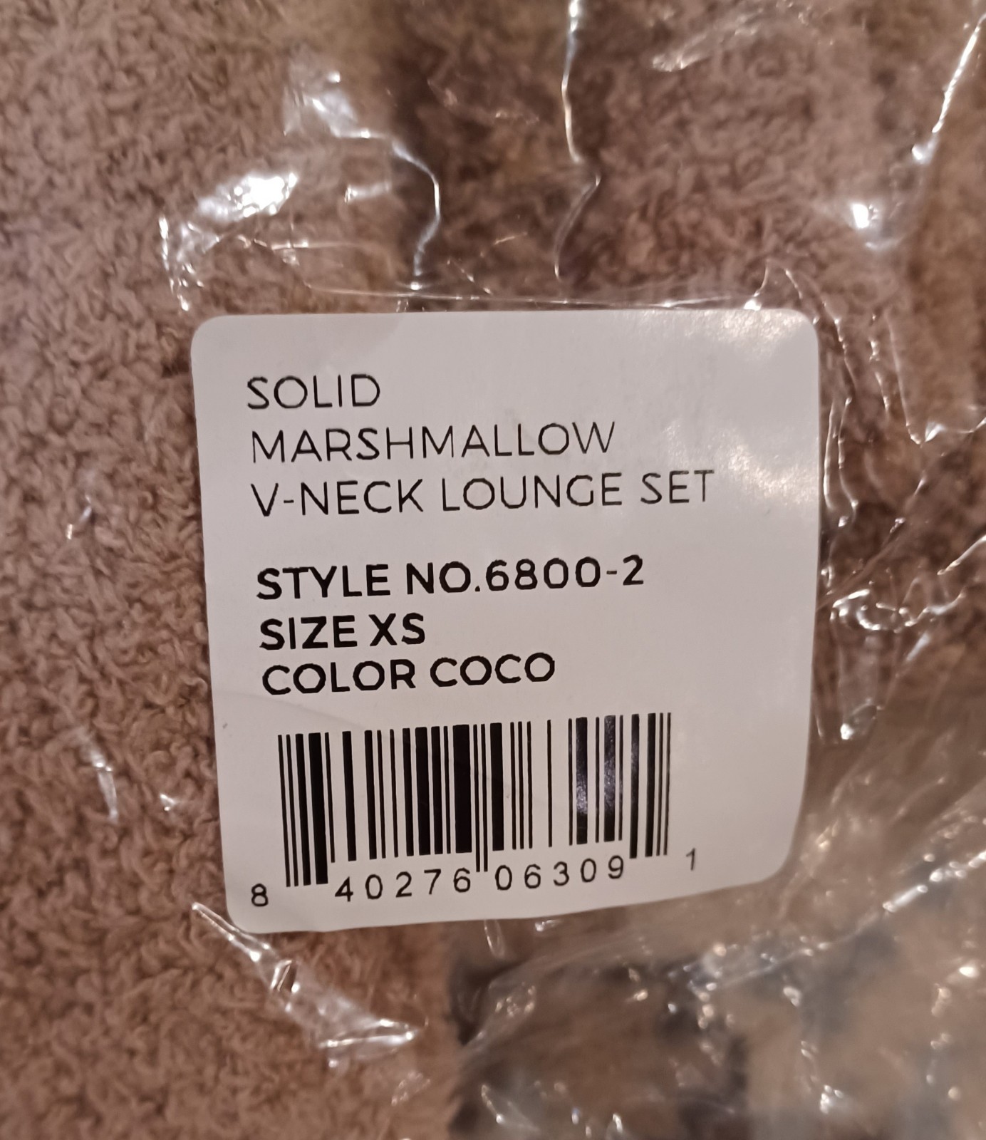 NWT Softies Women's Marshmallow V-Neck Lounge Set Ultra-Soft, Coco, XS