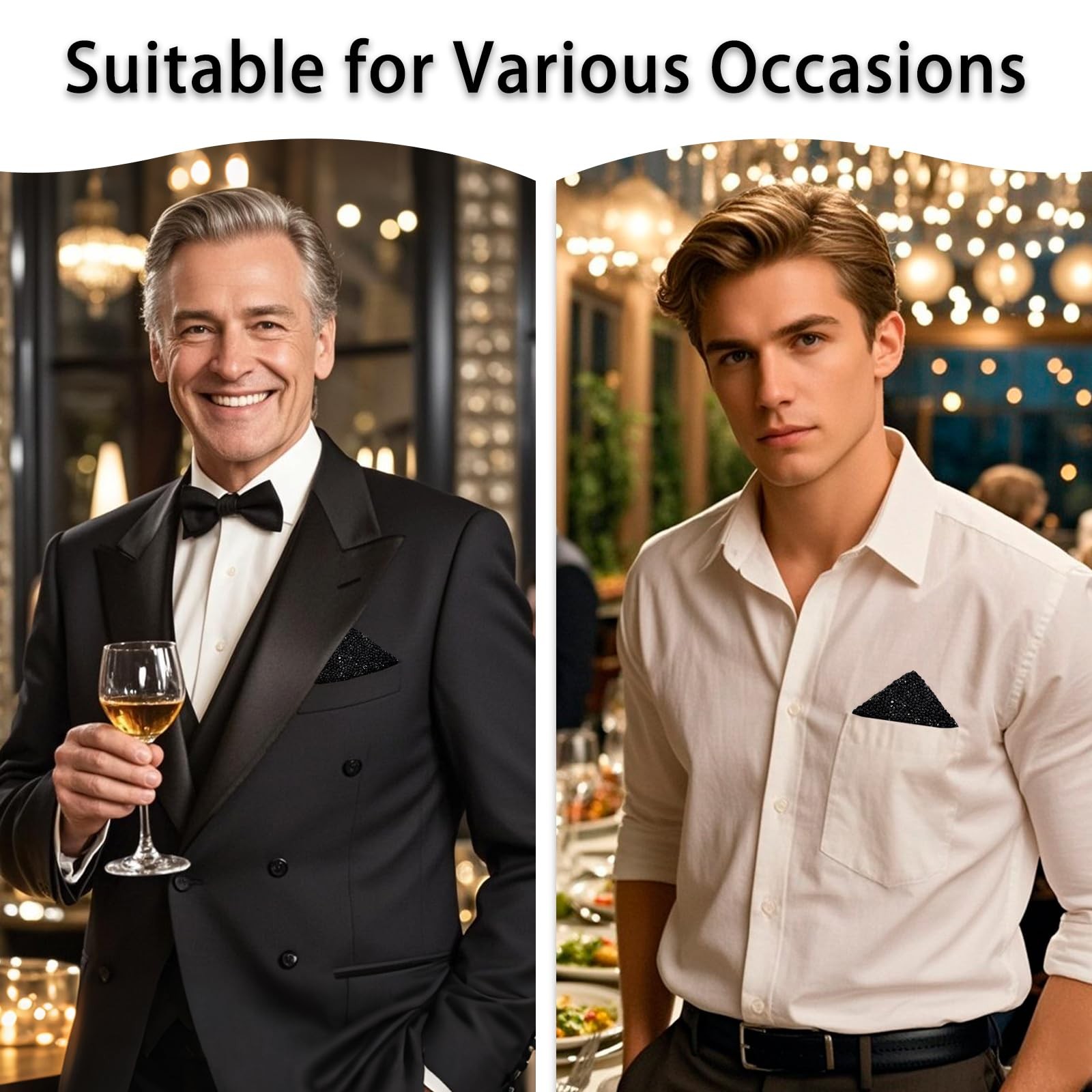 Pre-folded Rhinestone Pocket Squares for Men, Suit Handkerchief Mens Pocket S...