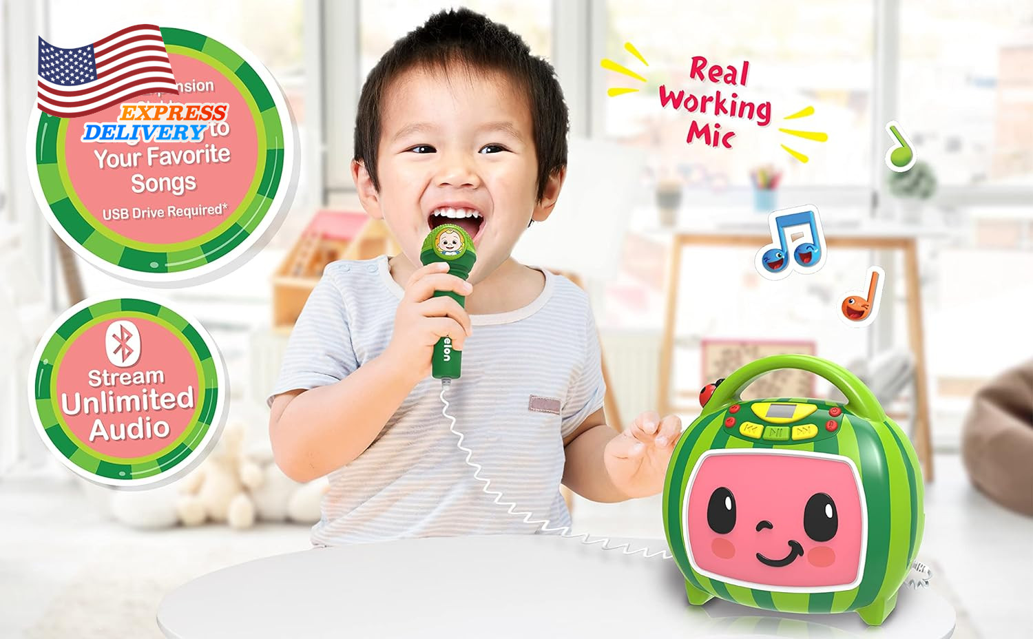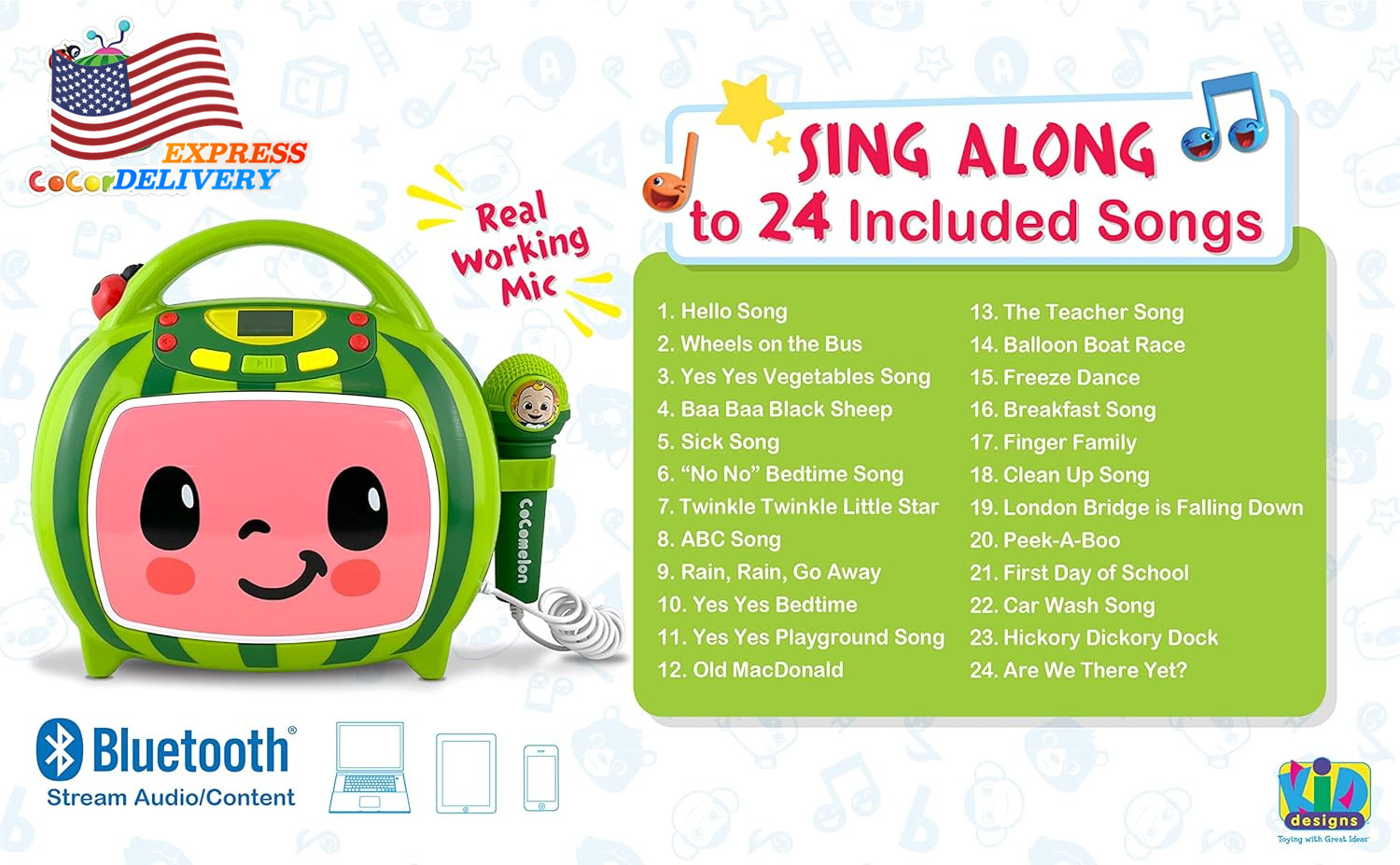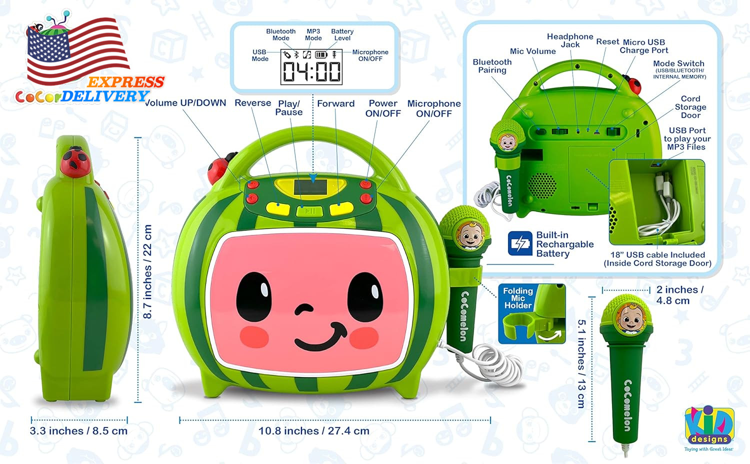 Cocomelon Karaoke Machine Portable Bluetooth Party Speaker w/Microphone for Kids