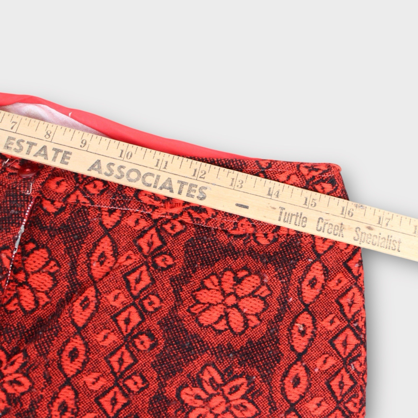 как выглядит Vintage 1970s Red Black Floral Pattern Pants High Waist Wide Leg Boho Retro M фото
