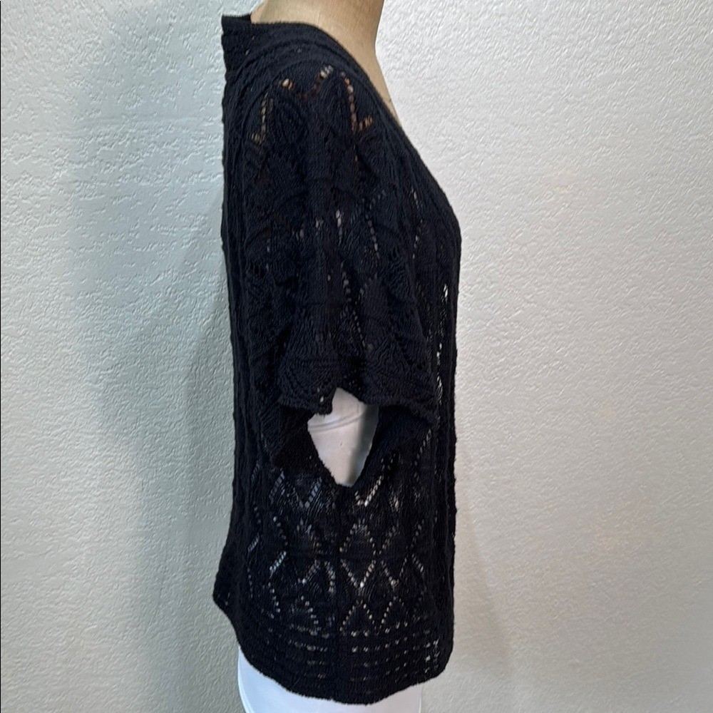 Croft Barrow Women Black Open-Knit Lightweight Cardigan Size Large