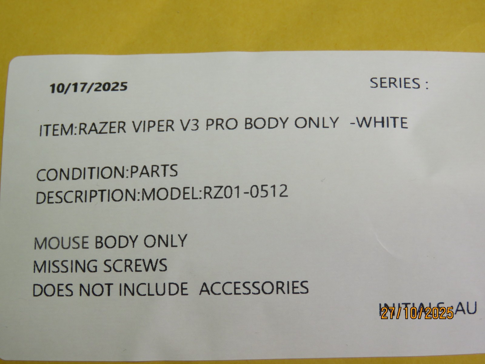 Razer DeathAdder V3 Pro Wireless Gaming Mouse Body Only PLASTIC SHELL ONLY WH
