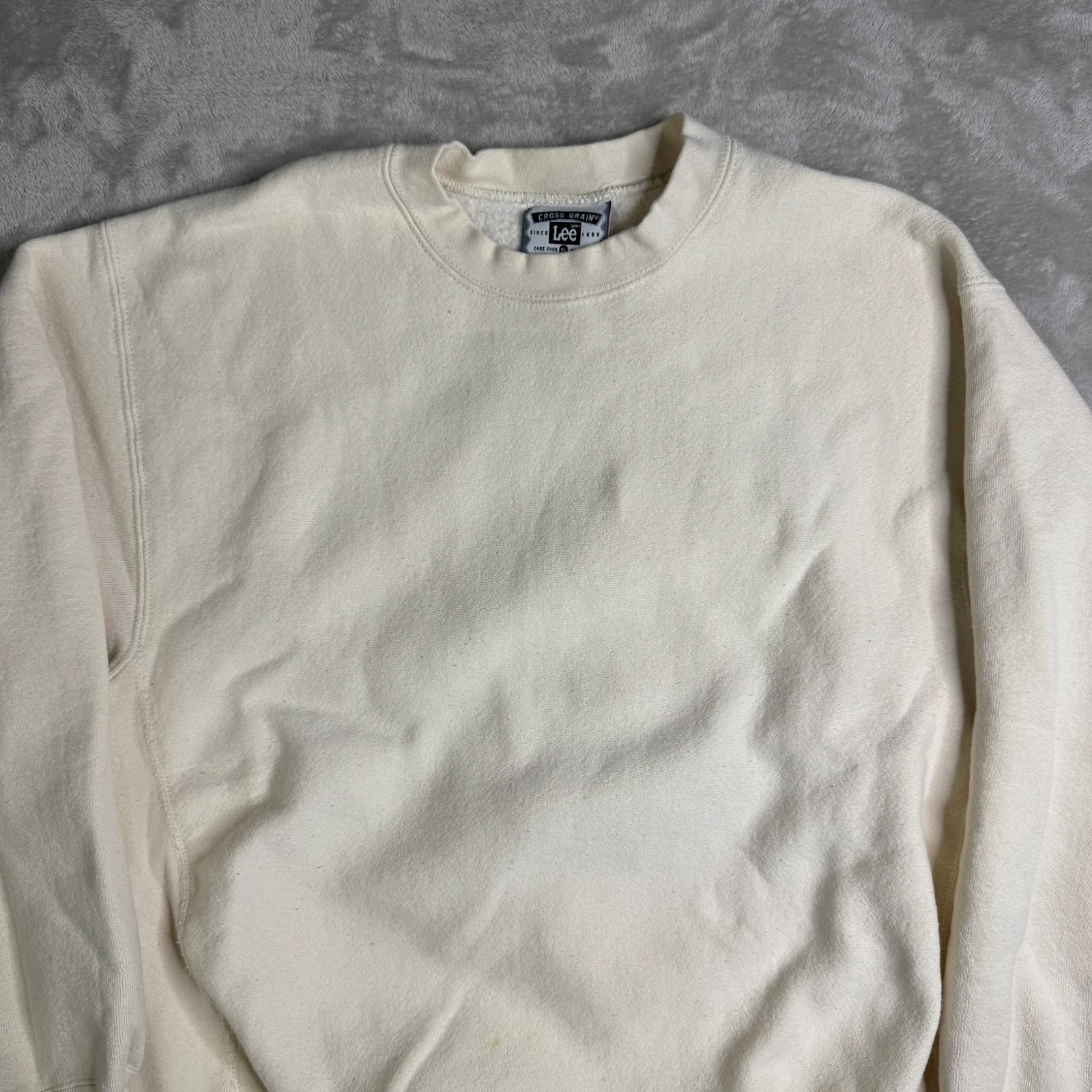 Vintage Lee Heavyweight Crew Neck Sweatshirt Men's XL fits L Cream Made in USA