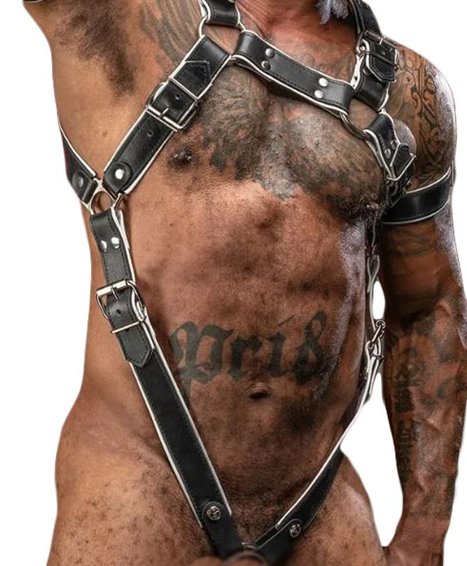 как выглядит Men Leather Chest Harness Body Armor Buckle Adjustable Strap Ring White Costume фото