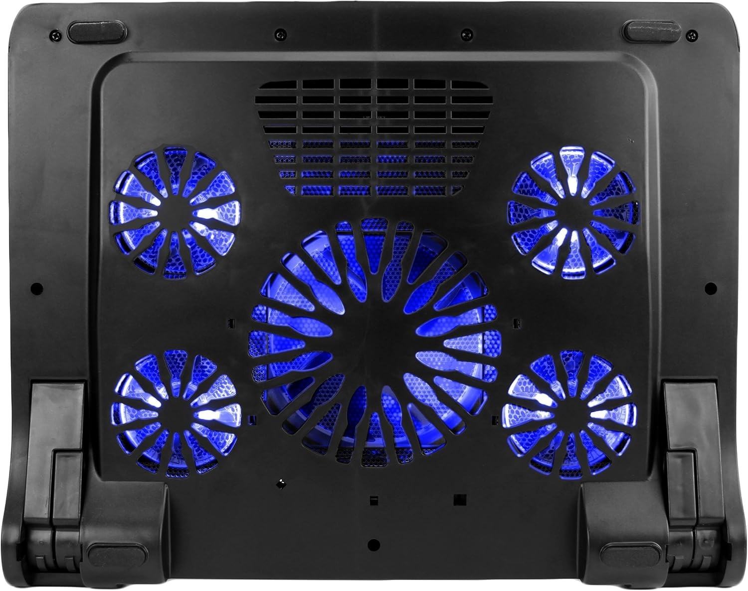 Blue Laptop Cooling Pad with Built-In Bumpers - 5 Fans for Optimal Cooling