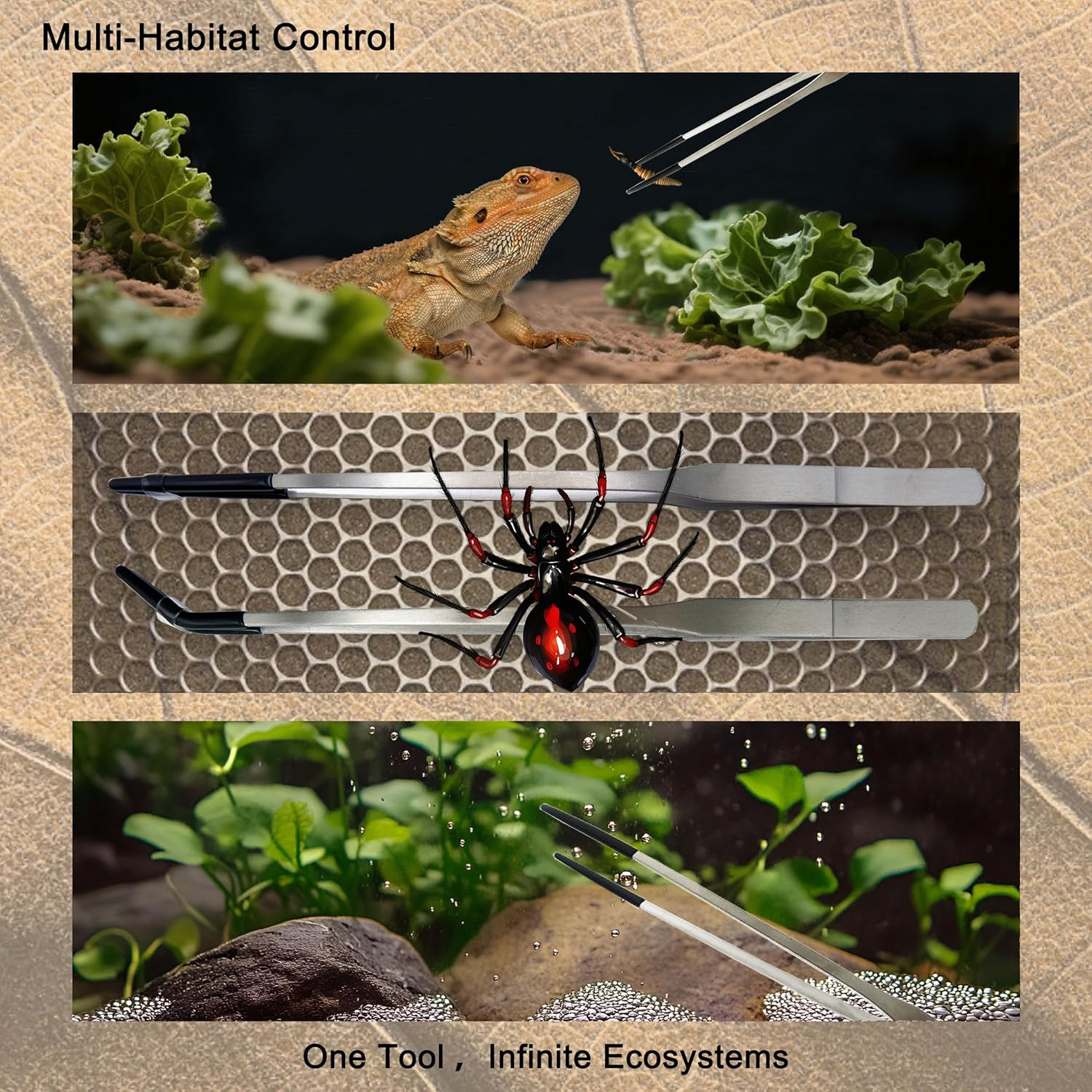 Vraysang 2 PCS 10.6 Stainless Steel Reptile Feeding Tongs with Rubber Tips, Str