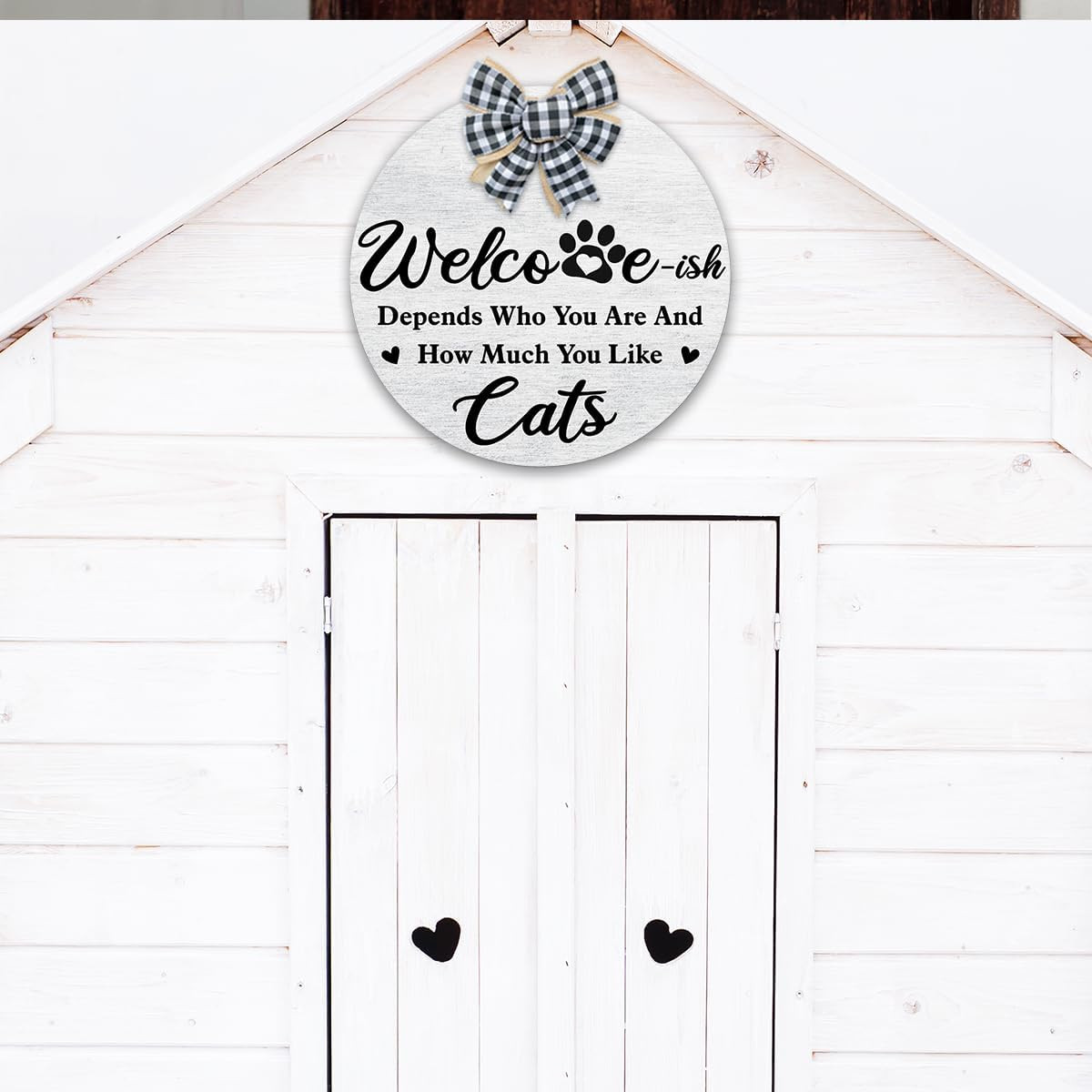 Funny Welcome Signs for Front Door,Funny Cat Wall Art Decor,Cute Cat Welcome Han
