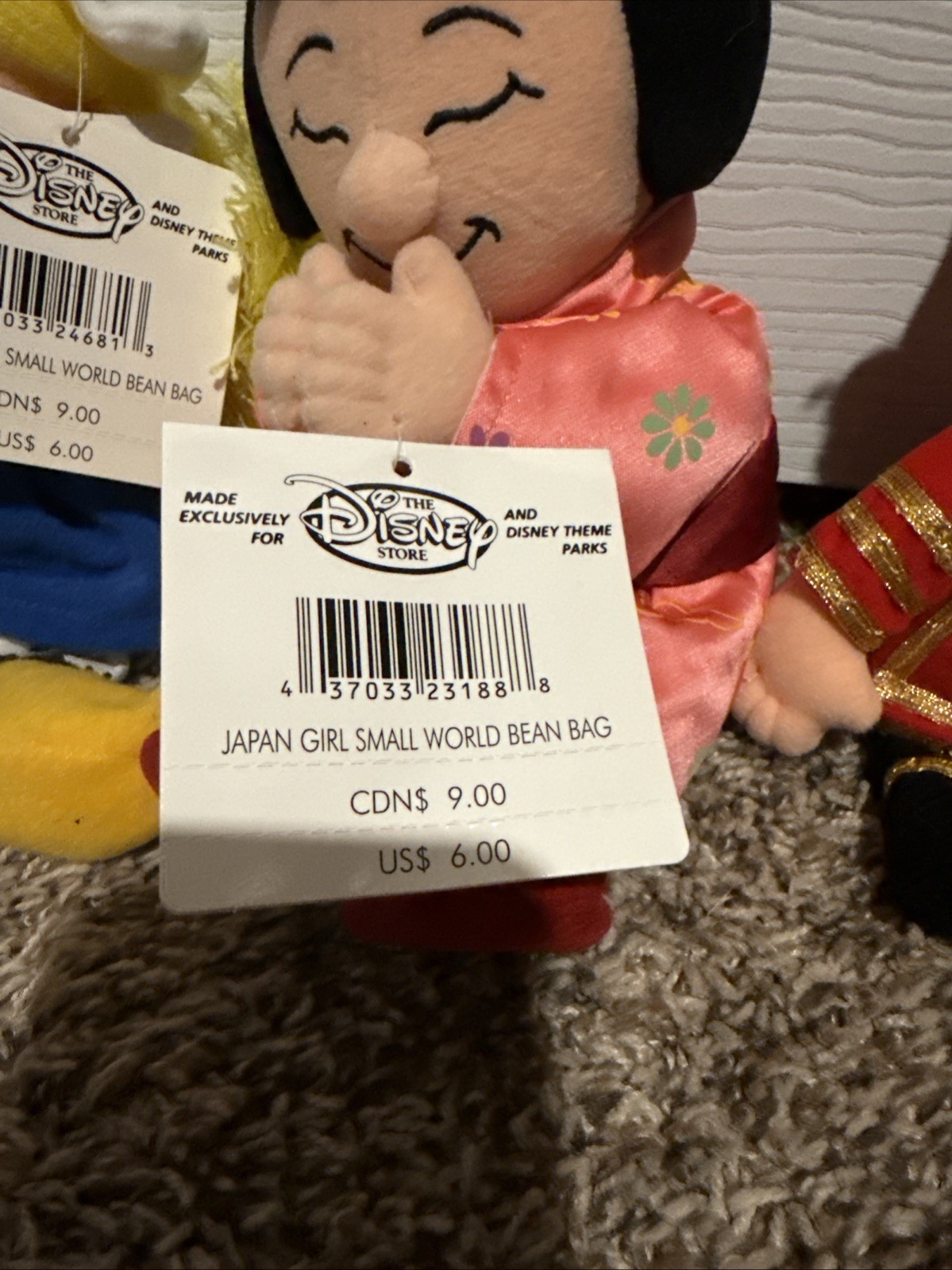 • It's A Small World Disneyland Disney Store Plush Mini Bean Bag Set Lot of 3