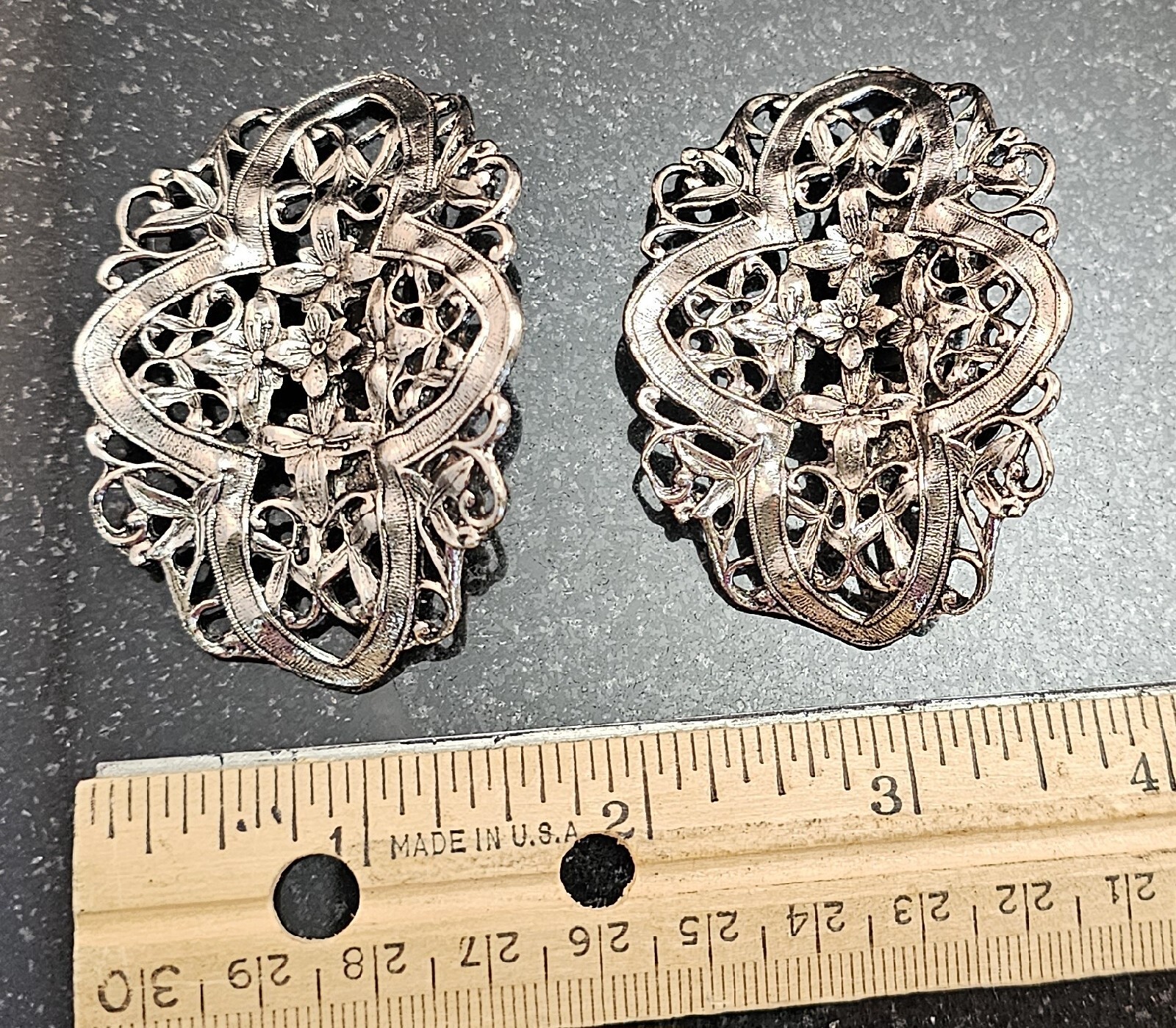 PAIR of Vintage Silver Tone Shoe Clips by MUSI - Vintage