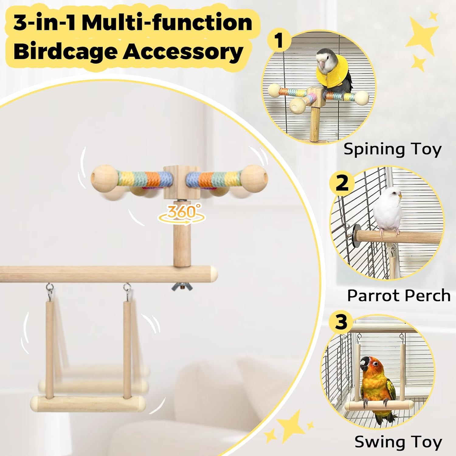 Bird Perch Swing Toy Combo Bird Toys Parrots 360 Spin Function Hanging Parakeet