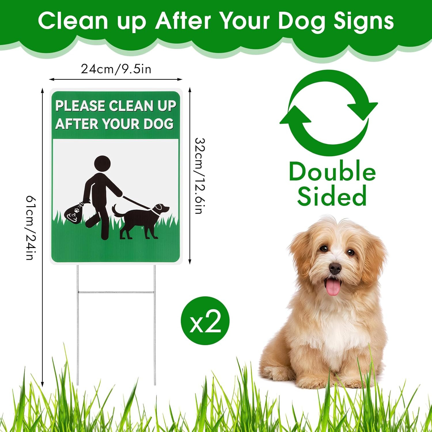 2 Pack Clean up after Your Dog Signs, 12.6 X 9.5 No Pooping Dogs Signs with Me