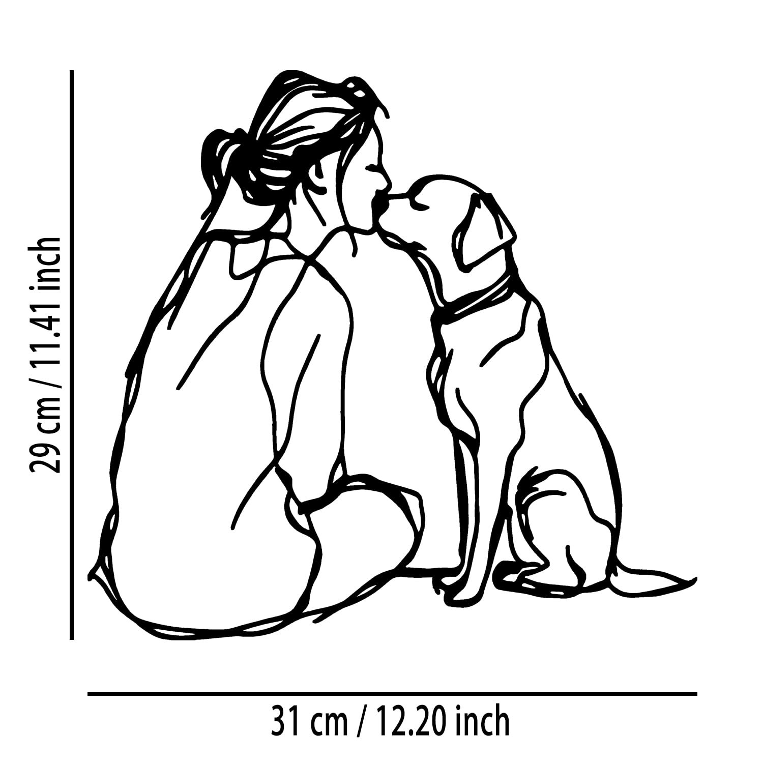 Woman Dog Metal Wall Decor Pet Lover Art Minimalist Animal Sign Black