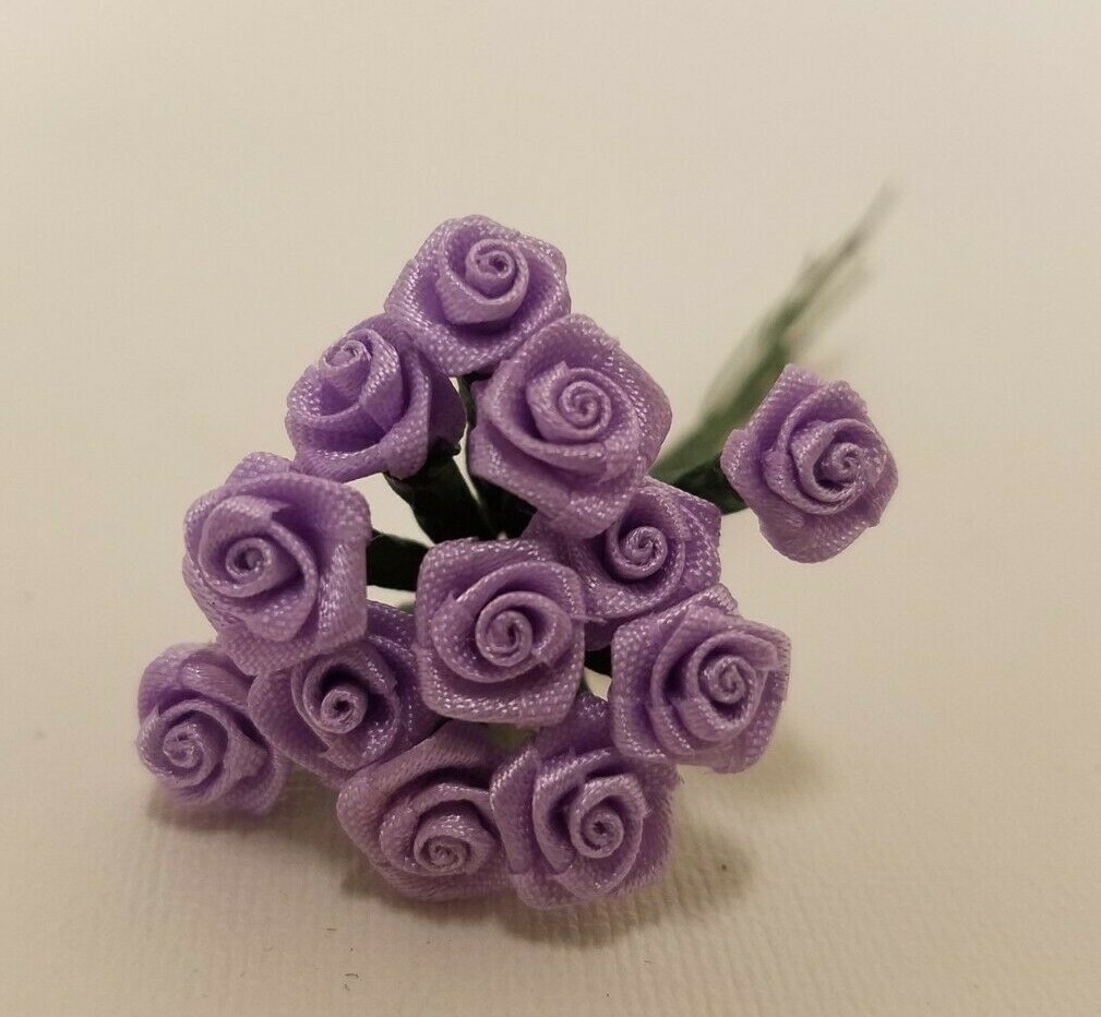 Wholesale Lot Lilac Lavender Satin Ribbon Roses Flowers 10mm 3/8 on Wire Stem