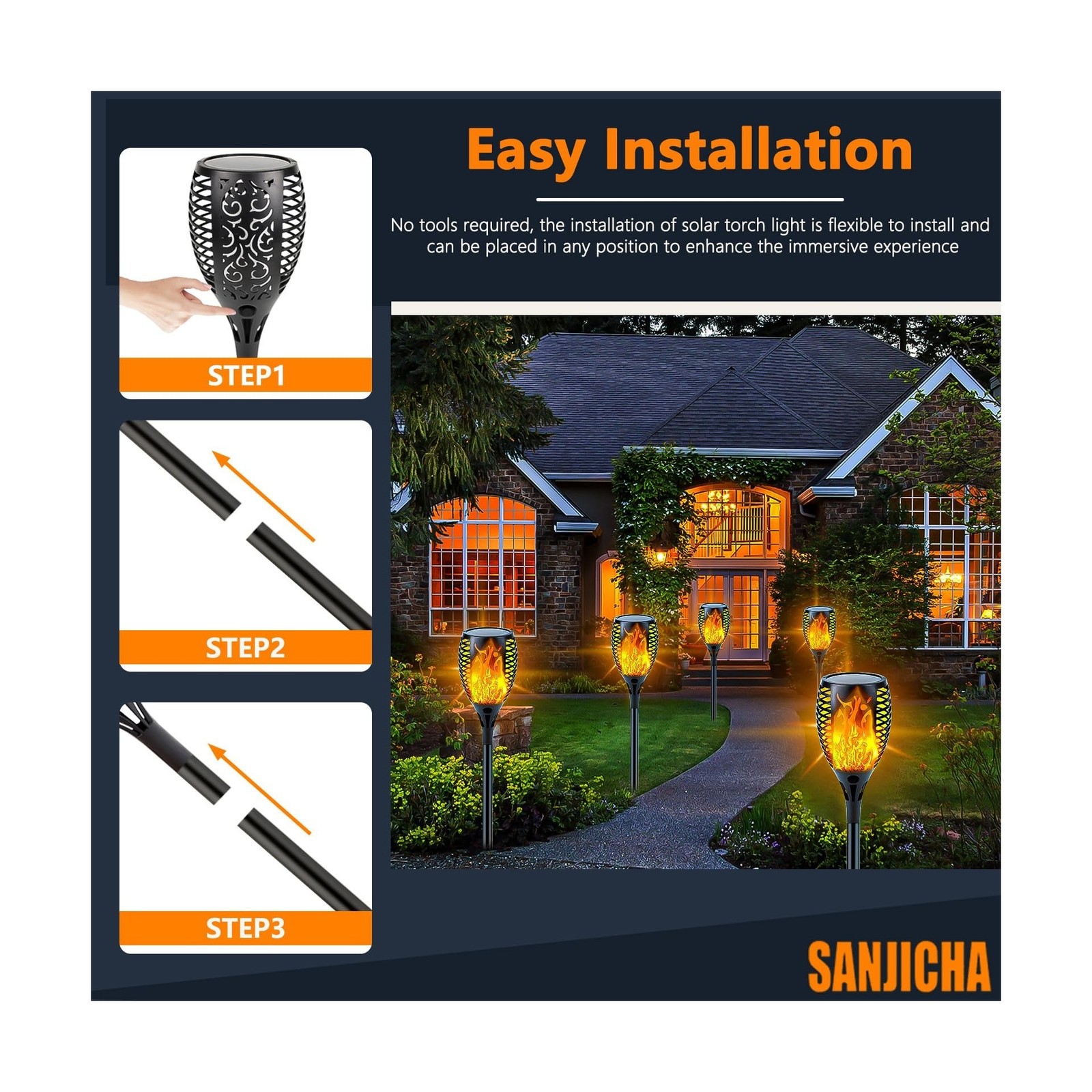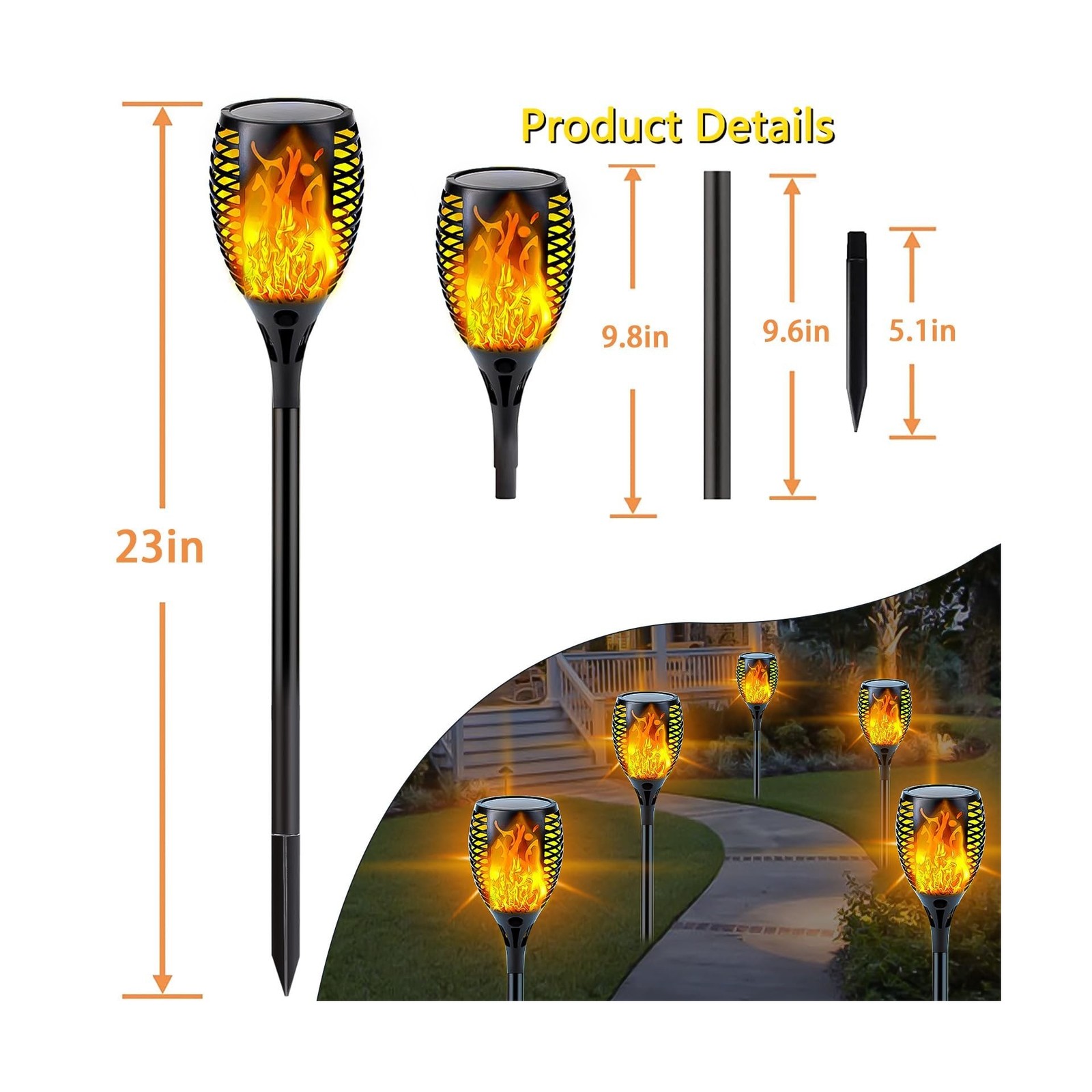 как выглядит Upgraded Solar Lights Outdoor, 6 Pack Flickering Flame Solar Torch Lights wit... фото