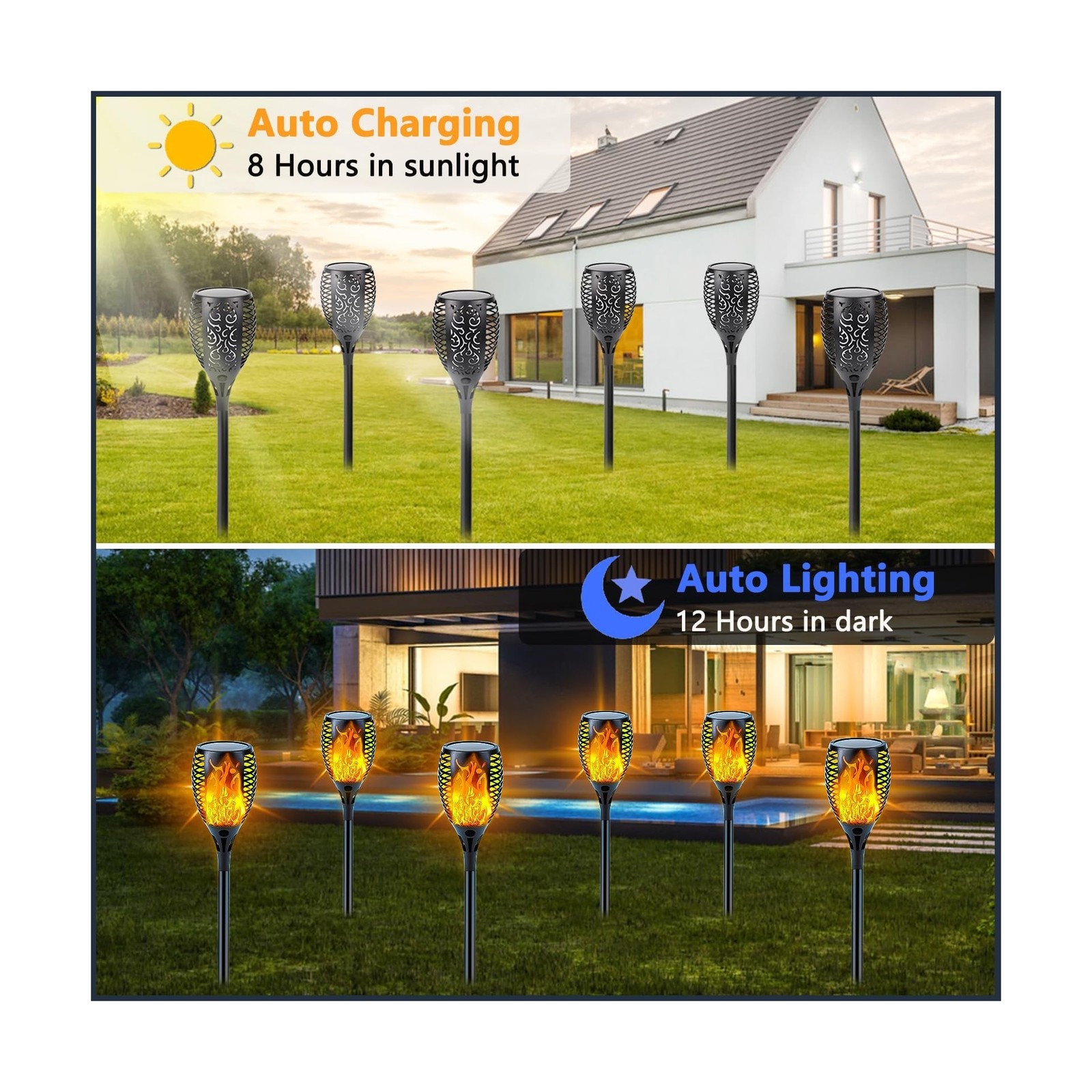 Upgraded Solar Lights Outdoor, 6 Pack Flickering Flame Solar Torch Lights wit...