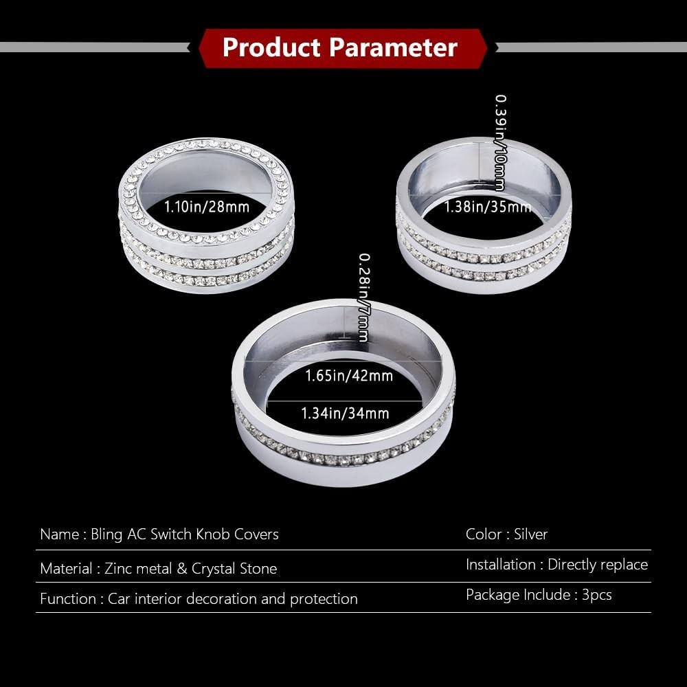 Accessories Bling Accessories Crystal AC Knob Covers Auto Interior Silver