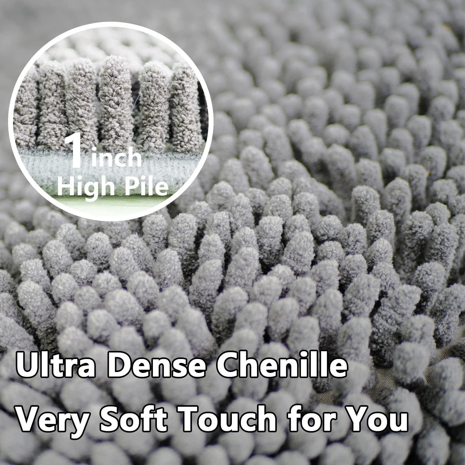 Material Feature: Chenille High Pile, Super Absorbent, Anti-Slip Bottom
