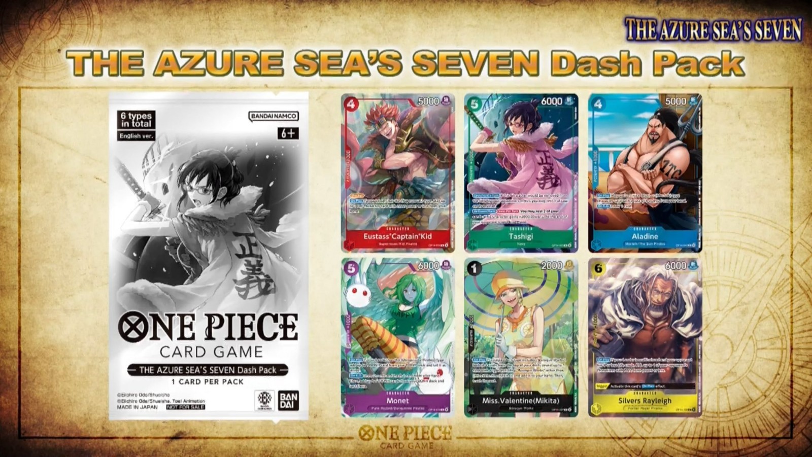 как выглядит One Piece Card Game Op14 The Azure Seas Seven Box Topper Promo Dash Packs фото