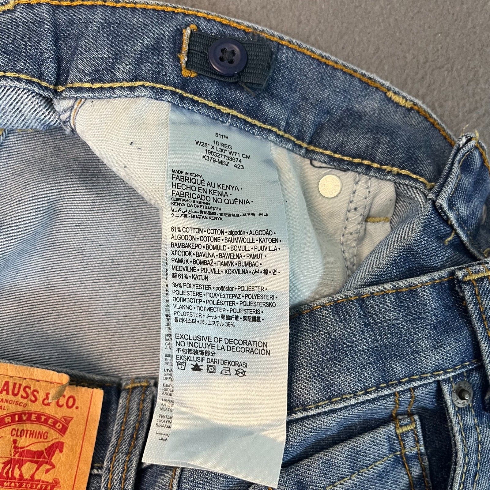 как выглядит Levis 511 Slim Size 16 Reg 28x30L 28 Blue Denim Jeans Teens Boys Unisex фото