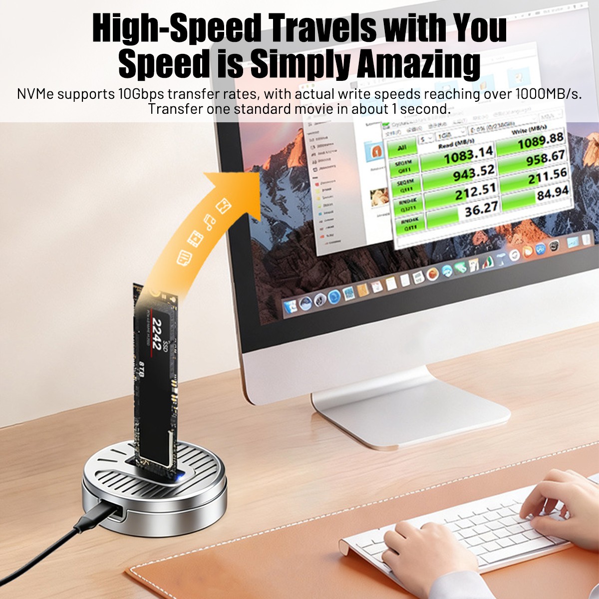 Tool-Free M.2 NVMe SSD Enclosure Dock 10Gbps Aluminum USB-C for 2230 2242-2280
